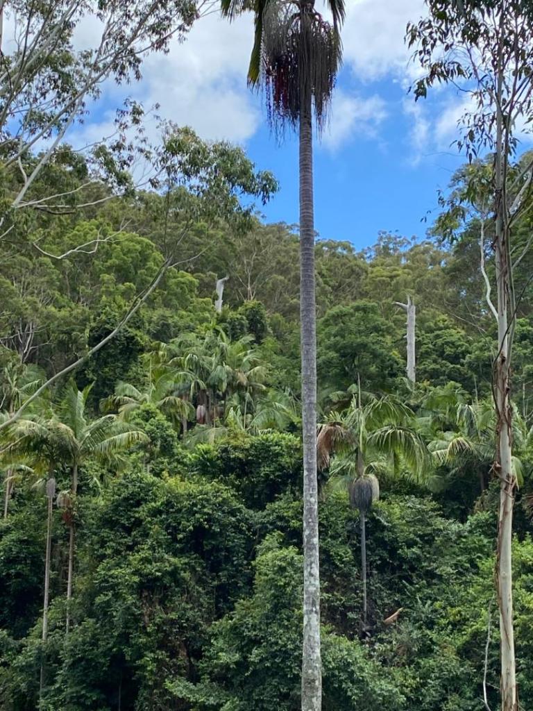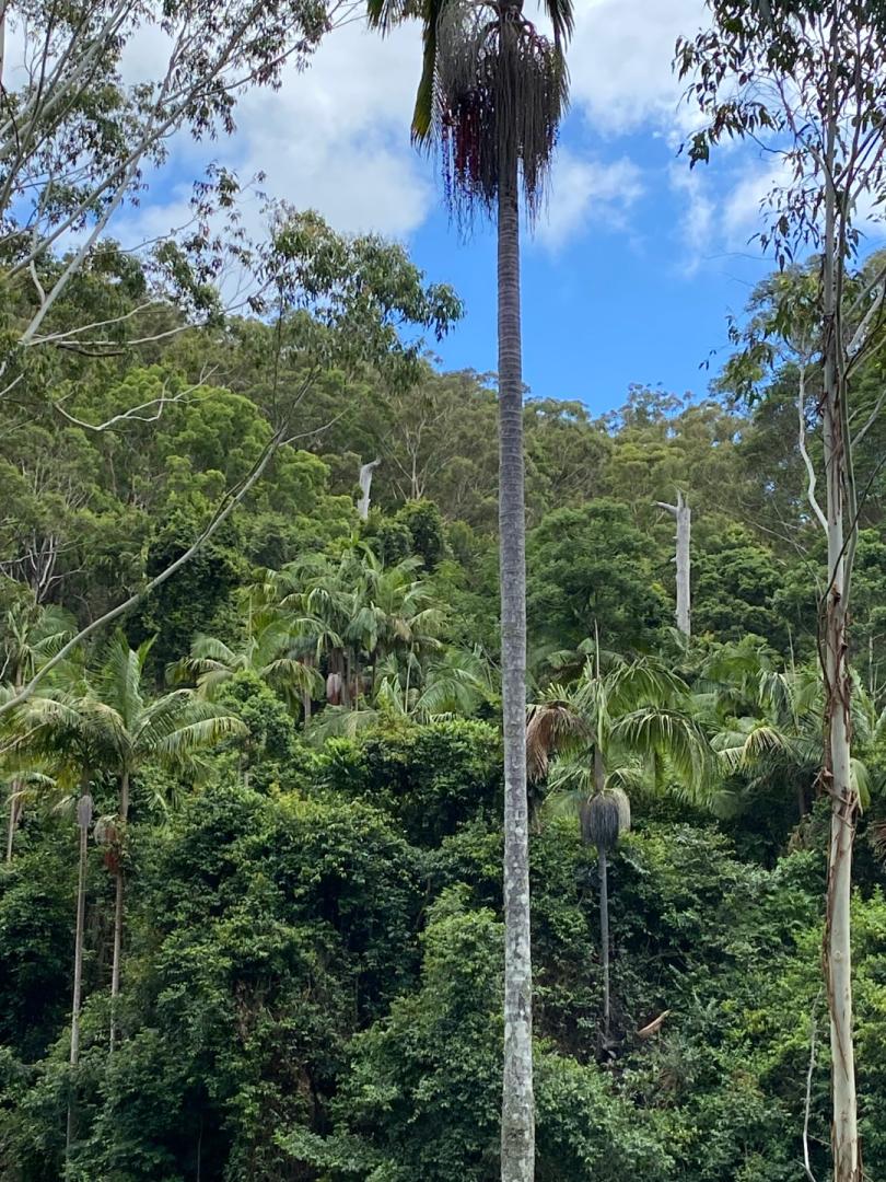 I hope not! I plan to remove both of my backyard ones when they are showing signs of flowering, although I plan to replace the one near the fence (away from the houses) with another one at that point. Great palms other than the monocarpic thing. 💀 Here's a recent shot of mine. That row got a ton of wind in the recent Santa Anas, with the Kentia whipping around... but the Gigas looked fine. 👀 Only other anecdotal info I have is the fact that two at "Jungle Jacks" have been dead a LONG time and are still standing... A neighbor near me also had a post-flowering one in their yard for a couple years without incident. I wouldn't trust a Urens though!1 point