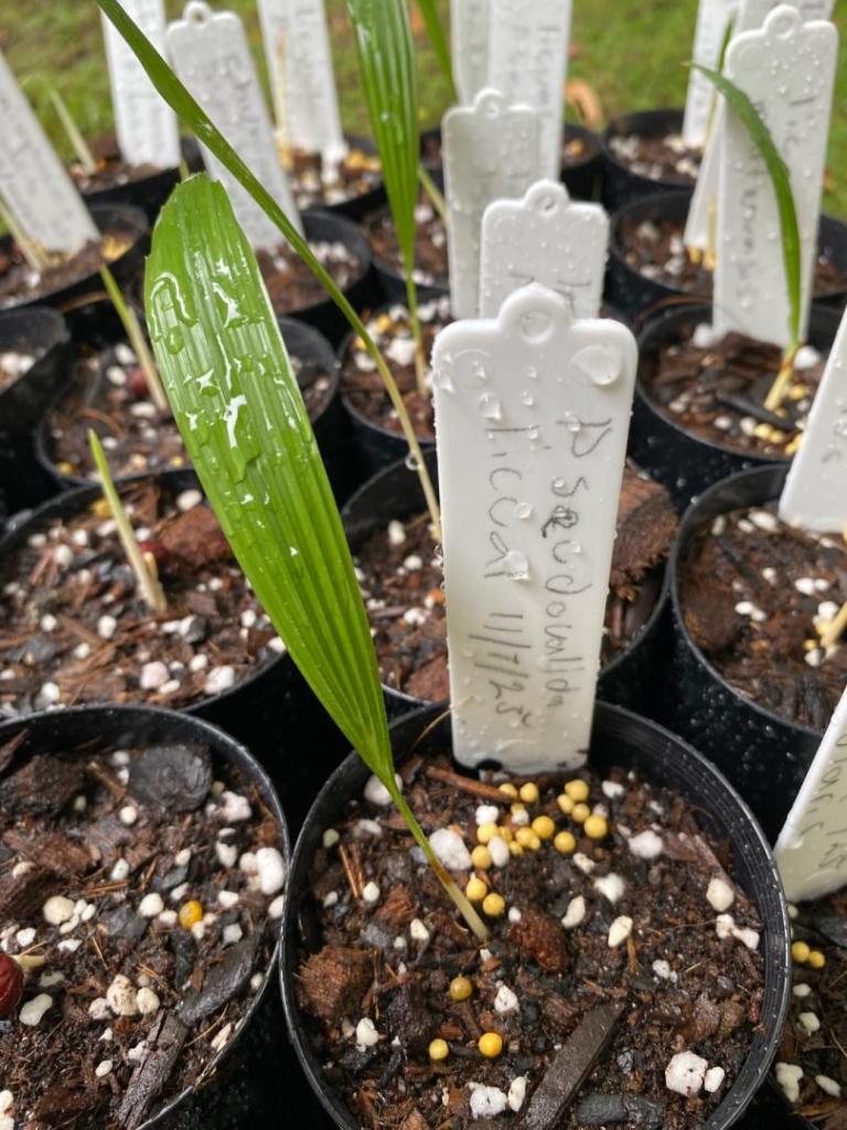 NOTE: In the temperature ranges below, the lower temperature in ranges typically comes from an Ambient Weather model and the higher temperatures come from a fan-aspirated Davis Vantage Pro 2. If there is no range, both stations were within a degree of each other. If you own an Ambient Weather station, know that the low temperature will be slightly depressed most nights compared to the DVP2. For a full write-up on the comparisons between these models: https://www.palmtalk.org/forum/topic/76970-weather-station-experiments-and-brand-comparisons/ Overall Winter Synopsis (thus far): This cold season started early and didn't disappoint people who love cold snaps. The first cold snap on 11/11/2025 brought the yard almost uniformly down to 36F. This was a full 8F lower than the previous daily record low of 44F here. 11/12/2025 followed with 38F-39F here. December 31st finished off 2025 with a bang as the temperature dropped to 34F-36F in various areas of the yard. Most of January was up and down, with cold events within typical norms frequently interrupting warm periods. The low for the month in the garden was 31F on 01/16/2026. The garden recorded a daily record high of 86F on 01/25/2026, while the airport crushed the previous record high by recording 88F on the same day. The cool-off came swiftly, with multiple nights in the 30s leading up to the February cold blast on 02/01/2026 that brought 24F with 13MPH wind gusts. This event was followed with consecutive nights of 26F-28F, 30F-31F, 38F-39F, 42F-43F, 34F-35F in the garden. The stats below summarize this section, using the DVP2 numbers for the garden temperature: Thus far, most coconuts and crownshaft palms look like they were hit with a blowtorch. Especially affected have been Archontophoenix alexandrae and Dictyosperma album 'conjugatum'. Most Adonidia merrillii, Wodyetia bifurcata, various species of Veitchia (arecina, joannis, winin), Beccariophoenix fenestralis, Roystonea regia, Ptychosperma elegans, Pritchardia thurstonii, Chrysalidocarpus prestonianus, Carpoxylon macrospermum, Hyophorbe (Bottle + Spindle), Caryota mitis, Chambeyronia (macrocarpa, oliviformis, various forms) and Satakentia liukiuensis are heavily damaged to defoliated (80%-100%). It's likely that any Adenium (Desert Rose) left outdoors is dead. More moderate damage (40%-60%) has appeared on Phoenix roebelenii, Beccariophoenix alfredii (some are undamaged), Latania lontaroides, Carpentaria acuminata, various former Dypsis (Chrysalidocarpus decaryi, lutescens, lanceolata, cabadae, pembanus, letptocheilos), Ptychosperma macarthurii, Syagrus schizophylla, Saribus rotundifolius, Cryosophila warscewiczii, Encephalartos ferox, and 2 x Thrinax radiata where the fans face the wind. Light damage has shown up on Howea forsteriana and Hyphaene coriacea in a few spots. No damage has appeared thus far on Coccothrinax argentata, Leucothrinax morrisii, Pseudophoenix sargentii (some in town do show damage), 1 x Thrinax radiata with fronds parallel to the wind, Chrysalidocarpus decipiens, Kerriodoxa elegans, Zamia furfuracea, Zamia integrifolia, any Livistona (decora, chinensis, saribus, muelleri, australis), Arenga engleri, Copernicia (alba or fallaensis) or pineapples. Medemia argun has no cold damage in the ground or in a pot, but they have other issues here. The typical bulletproof palm genera ( Sabal, Serenoa, Acoelorraphe, Chamaedorea, Chamaerops, Butia, Brahea, Syagrus, Phoenix, Rhapis, Rhapidophyllum, and Washingtonia) had no issues, either. This is why many of these were the backbone of gardens before Lethal Bronzing. Silver Buttonwood appears unaffected at this point. Trachycarpus is fine through this event, but is difficult for most areas to grow. My potted plants were placed in a cage near the Atlantic tall coconut bed and suffered no cold losses as they were completely shielded from wind by a cement wall and plants in all directions. As far as hardwoods, it looks like all of my tropical hardwoods will defoliate, but the branches feel solid. This includes: Ficus aurea, Delonix regia, Bursera simaruba, Mange (Glen), Avocado (Choquette), Coccoloba uvifera (Sea Grape). Philodendrons were laying flat on the coldest morning, but perked back up in front of the house. A few neighbors weren't so lucky. Their plants look like spinach. Crotons and Ti will likely defoliate, minus a few branches that were low enough to stay safe from wind. This cannot be considered a final report. The full extent of the damage won't be known for a significant amount of time. My hope is that everyone's favorites will recover and the rest of this winter won't be as terrible. That said, I have heard rumor that another similar outbreak is expected sometime in late February or early March. For now, a few positive photos: Areca vestiaria survived at Hollis since it is small and surrounded by really tough cycads. The former Lytocarium - now Syagrus weddelliana - did really well If the tree trimmers let it alone, the Satakentia near the parking garage should make it. A few of my coconuts show growth for now.1 point