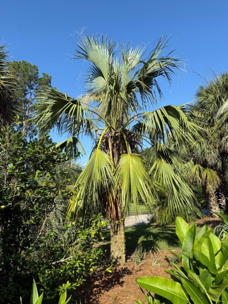 Billy, I can revisit this post and say hurricane milton at 110mph didnt budge my alfredii one cm. Half the the older leaves bend down and will brown prematurely because of it. But 17 months later it has recovered almost as fast as my 35-40' sabal causiarum. Interestingly my 35' bismarckia has had a rapid recovery after every open leaf was made limp in the wind. MY best advice for BA is to water consistently as wide as the crown and even a bit wider. THis encourages root growth which stabilizes the palm in wind. All 3 of my BA's took leaf damage, the one in most shade had the most damage, but zero tilting, NADA. Remember that taller palms see the worst damage in a hurricane as the most leverage is exerted on the roots by wind blowing ont he crown. The other thing I love about my alfredii is trimming dead leaves it is a breeze. Though they clean their own trunks, no trimming could mean 3-4 brown leaves on the palm most of the year. If you want a strong palm in wind, consistent watering of ground at least to the drip line(crown ends) will push root growth laterally. Roots running straight down are not as effective in spreading roots in resisting leverage created by wind. Just basic physics. for your hurricane question here is the result for BA. You can see the royal nearly stripped int he back ground and second pic is sabal causiarum, crown 90% snapped leaves or bent down and doomed to premature browning. BA/Royal sabal causiarum before milton the day after milton close up causiarum looking up just after milton Causiarum as of 1-24-2026, first thing it did is set seed as you can see. Then 10-12 leaves in one grow season. Its now closer to 40' as new leaves mean new trunk growth Alfredii has also done well, it lost ~10 leaves prematurely and is regrowing the crown, but its encouraging. I expect this grow season the recovery will be complete. .1 point
