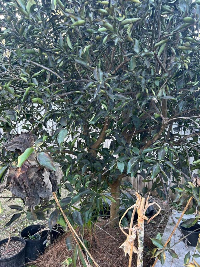 Well my two orange trees survived the deep freeze and snow event in January 2025 just fine (amazingly!) in reference to my last post. There wasn’t even that much twig dieback. They didn’t bear much after with the Glen navel having a grand total of 1 fruit on it and the Parson Brown about 25. They got whitefly+sooty mold really bad as I didn’t keep on top of the whiteflies enough but the trees remained vigorous otherwise. Here they are today after enduring two nights at 20 deg (the first being windy advective and the 2nd calm/radiational). I didn’t do any protection; however, just to the north of them is my 6x10ft and about 7 ft high greenhouse and the fence to the west probably helped block some of the bitter winds somewhat. We’ve had a good amount of cold weather before this event so I think they were sufficiently dormant to not be shocked like they were in Dec 2022. They’re quite stressed and I think there’s going to be quite a lot of leaf drop but they should survive without too much dieback from what I can tell. They’ve been through as bad or worse before. Also it’s actually kind of good when they drop some leaves or even die back a little because it really knocks back the insect pests (such as whitefly, leaf miner) and the new growth in spring is unafflicted and pristine for awhile. Parson Brown on the left, Glen navel on the right Parson Brown Glen navel Many of the interior leaves look good still2 points