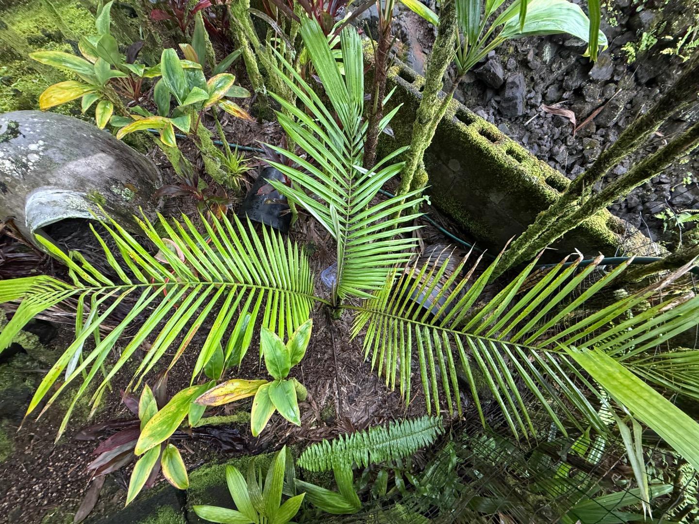 I think this plant is from the initial batch of seeds distributed to nurseries around the world shortly after the discovery. It went into the ground from a 2 gallon pot almost five years ago. January 2018 Today it is about 3.5 ft (1 M) tall. Sorta slow by my standards, but keeps chugging along. Temperature range about 60-83 degrees F. Rain about 130" per year with supplemental irrigation during dry spells. Dappled light morning and afternoon with direct sun overhead at mid-day. Growing in black volcanic cinder with generous mulching. Starting to resemble a Kerridoxa with fronds split down the middle. I have high hopes for the next five years.1 point