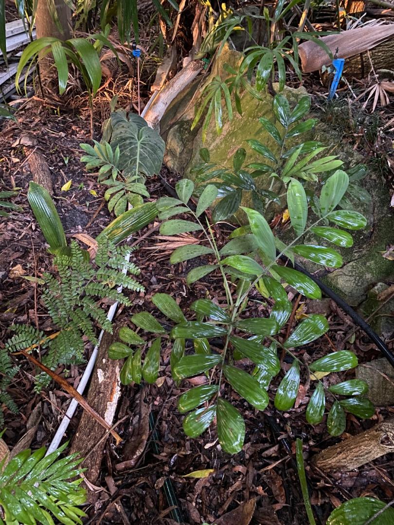 I planted out this weddelliana yesterday. The soil in this part of the garden is heavier than the rest (takes about five minutes to drain 2" of water). The area gets consistent summer "rainfall" from fog dripping from the neighbor's Magnolia grandiflora overhead. It also gets almost no sun any time of year and as a result is continuously moist. I know this species is prone to root rot, so I cut off irrigation to the plant. It will be our only palm that isn't irrigated. What does everyone think of this strategy?3 points
