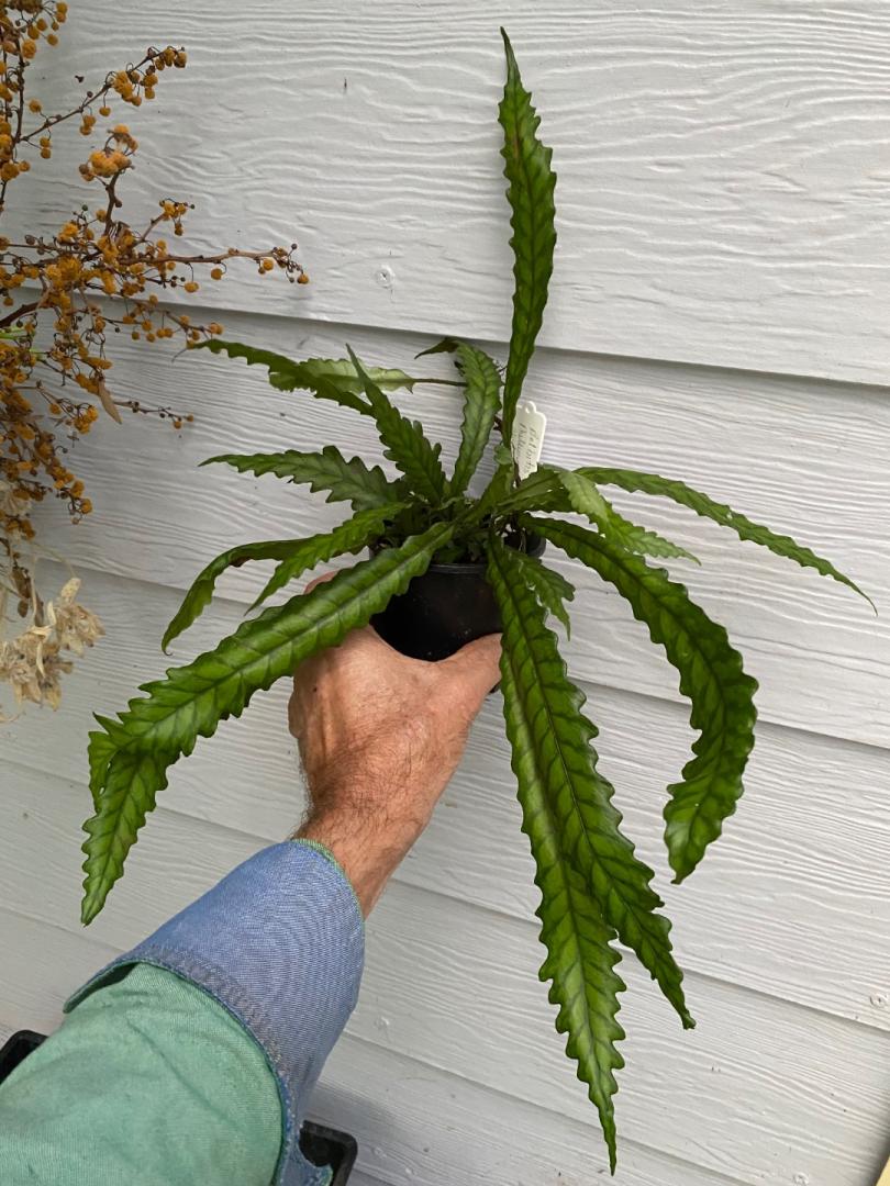 This true-from-seed mutation of the normally common Golden Cane Palm came to the attention of PalmTalk during the 2016 Biennial in Thailand where this mutation originated. I bought 10 seeds from RPS the following year or so and currently have four extra seedlings that need new homes. These seedlings were agonizingly slow growing compared to the standard golden cane and these are four years old. They do germinate true from seed as RPS claims so maybe in the future this Fused Leaf Form will become more easily available. See info below: https://www.rarepalmseeds.com/dypsis-lutescens-fused-leaf Dypsis lutescens Fused Leaf Form: $20.00 each (4 available) OR Take all four seedlings @ $75.00 for the lot Shipping = $12.00 via Priority Mail No shipping outside the US. No shipping to HI Payment via Paypal PM me if you are interested. Tell me how many seedlings you want and I will respond with a quote. Give me your name/address to copy/paste on a mailing label. When you pay, tell me. NOTE: Please give me 24 hours to respond. After 24 hours, send me a civil reminder. Photos1 point