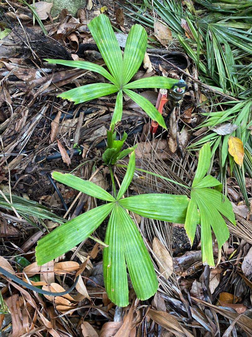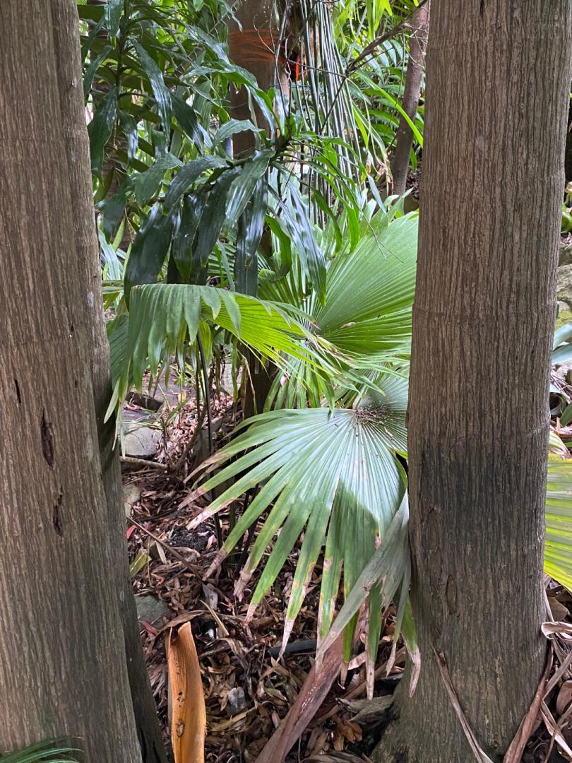 I planted our Caribbean Garden in our north-facing front lot. The palm selection leans heavily on genus Coccothrinax, one of my favorites. It does include a few interlopers such as Phoenix roebelenii and Hyophorbe lagencaulis but is overall true to the Caribbean vibe. My world famous Sabal Row used to be on the east side of our property until the builders of the Early-21st-Century modern unsold monstrosity of a black/White House was built. Fortunately, @C Bigler rescued all the Sabals and took them back to his nursery. Anyway, I have some pretty cool palms in a small space, most, you will note, are palmate. These are tough palms worth growing if you aren't blinded by crown shafted tropical pinnate darlings. Coccothrinax leaves dance in the breeze on warm sunny days. I would not plant any tropical palms on the north side of my house - those W and NW winds howl across the Cape's flat landscape in winter. Caribbean Garden canopy Latania loddigesii Latania lontaroides Sabal miamiensis (R) from a Pine Island Pier and Sabal miamiensis x mexicqnq? from Leu Gardens: Study both palms carefully and you will see the miamiensis x Mexican hybrid has much thinner leaflets than the miamiensis. It also grows faster (germinated 2015 vs. approx. 2008/2009) and its huge seeds ripen late summer vs. fall. Hyophorbe verschaffelrii Native Florida Stopper (Simpson's? red? other?) (center), Silk Floss Tree/Ceibus speciiciosa (rear) Hyophorbe lagencaulis (L), Phoenix roebelenii (C) Hyophorbe lagencaulis Ravenea rivularis Kerriodoxa elegans9 points