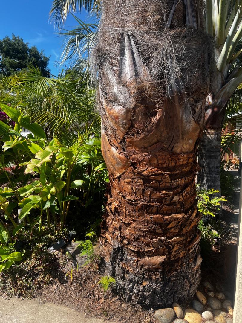 Posting a few photos of my Parajubaea torallyi. I planted this palm about 15 years ago from a 5-gallon pot. It currently has about six feet of clean trunk and it’s about 25+ feet tall. This time of year, I tug on the old leaf sheaths to see if any of them are ready to come off. If they're ready, they pull off easily. However, if they aren't, no amount of pulling will remove them. It’s not unusual to find Arboreal Salamanders (Aneides lugubris) under the old leaf sheaths as shown in the photo below. I'm in the San Francisco bay area.18 points