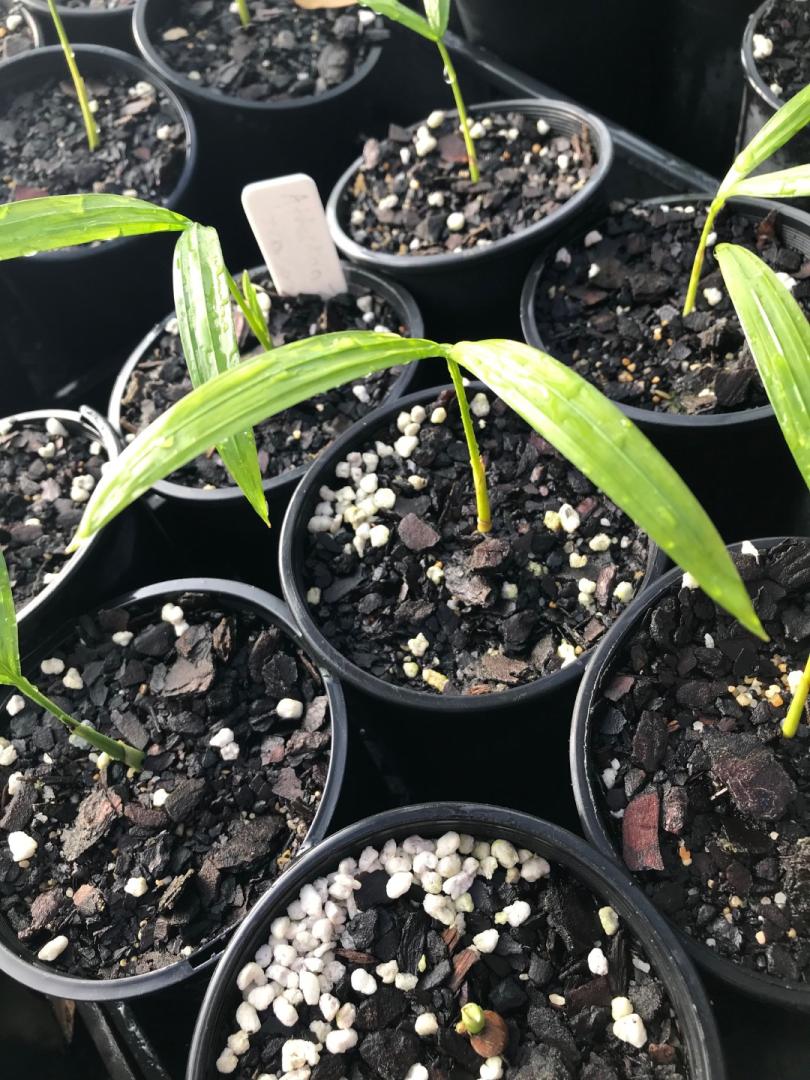 Time to pot up a few kerriodoxa seedlings, and to my surprise some trachycarpus sitjong seeds have germinated on the potting bench, I usually reuse the germination medium and just tip it out on the potting bench to recycle it. These are so lucky little sitjongs, just never give up on some seeds you just never know what will come up! And with the warm weather time to start potting up some tropicals.2 points