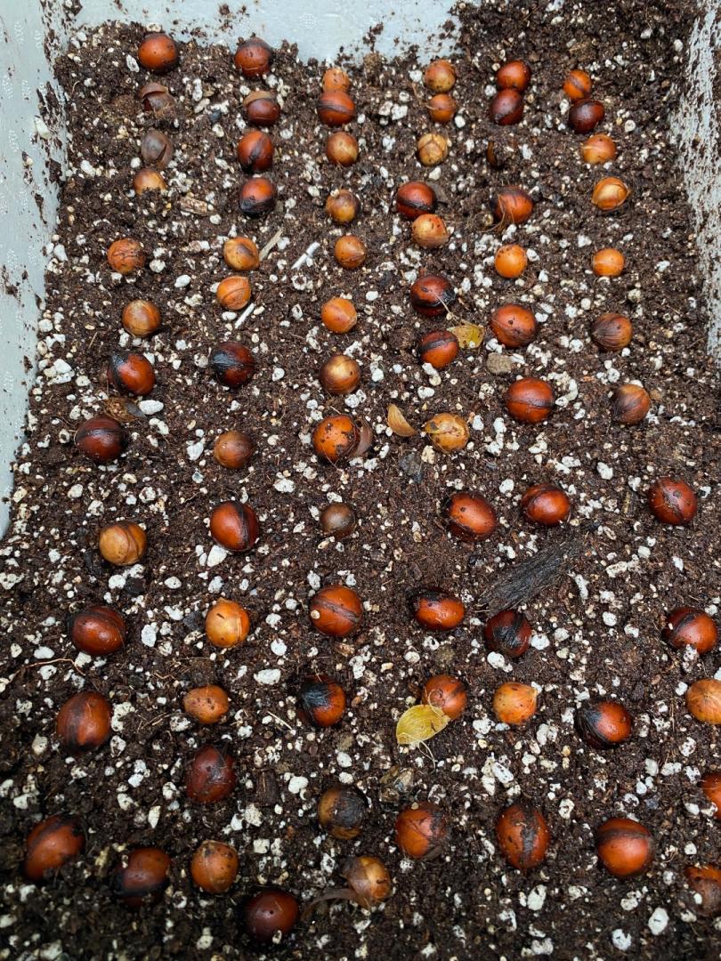 A couple more borneense have come up, and they have to be the biggest seedlings I have worked with. There’s another two that need potting a bit later so 5 out of 10 not too bad for imported seeds. Should be an interesting rather large palm tree to grow, definitely looking forward to seeing them in the garden.3 points