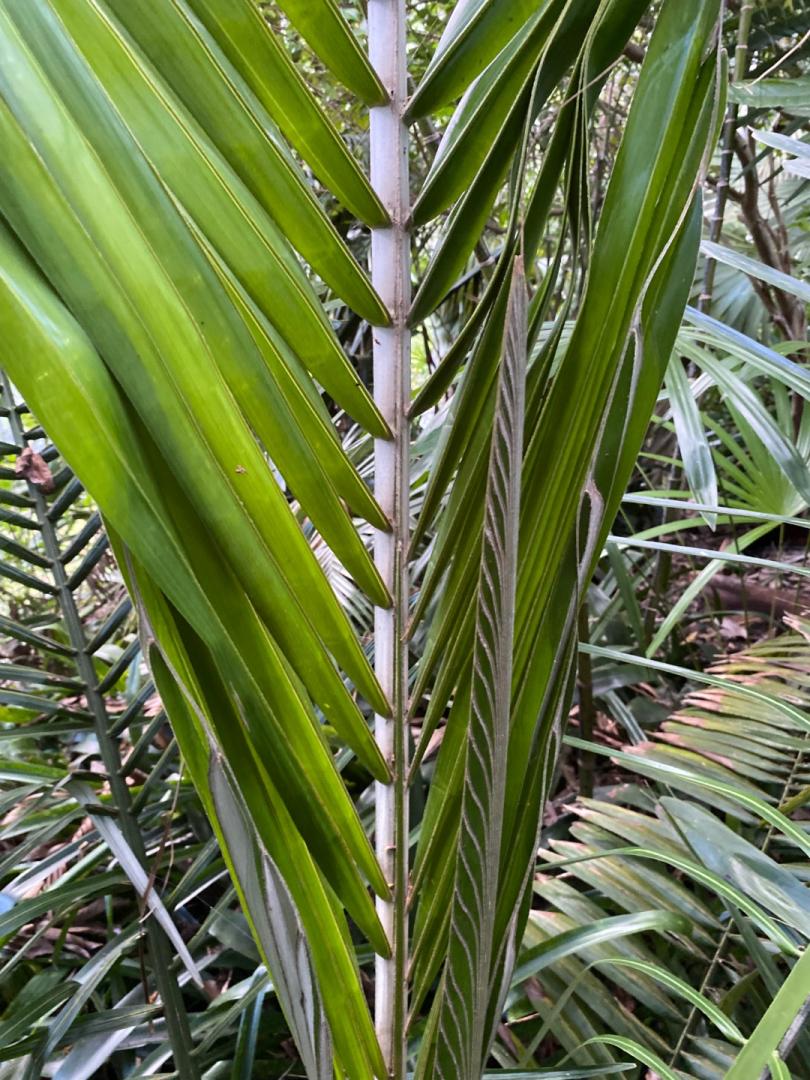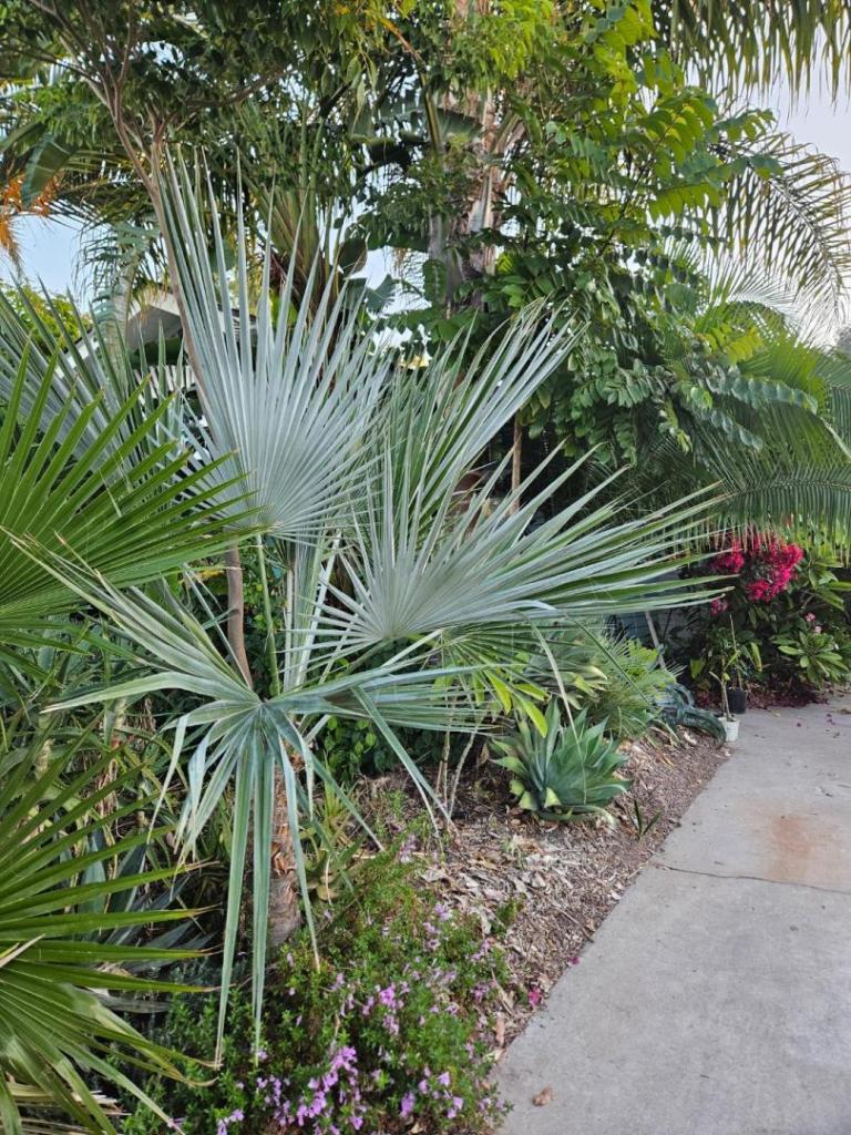 Here are 2 Allagoptera arenaria planted in the corner of the house. I finally got them to produce seed which are just starting to germinate. P sargentii also producing a bit of seeds. Serenoa repens which replaced another one that got too big and out of control. C proctorii Pinanga javana. This one is too exposed to the sea breeze but is hanging in there. Carpoxylon macrospermum. This one has grown well in this climate.9 points