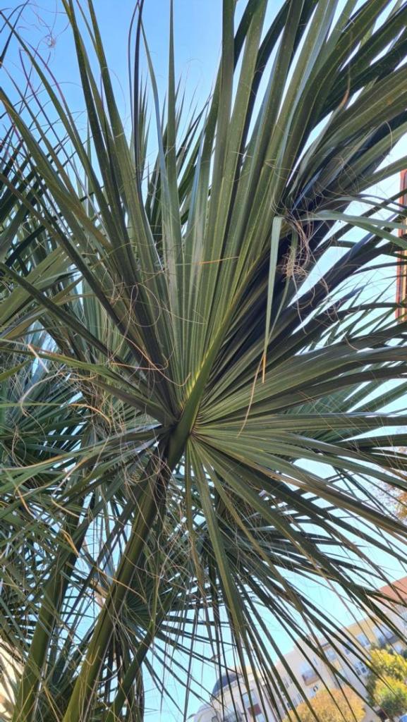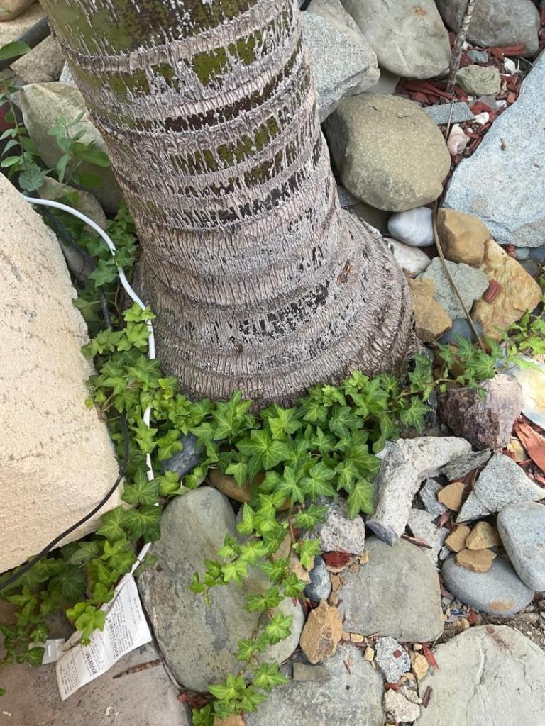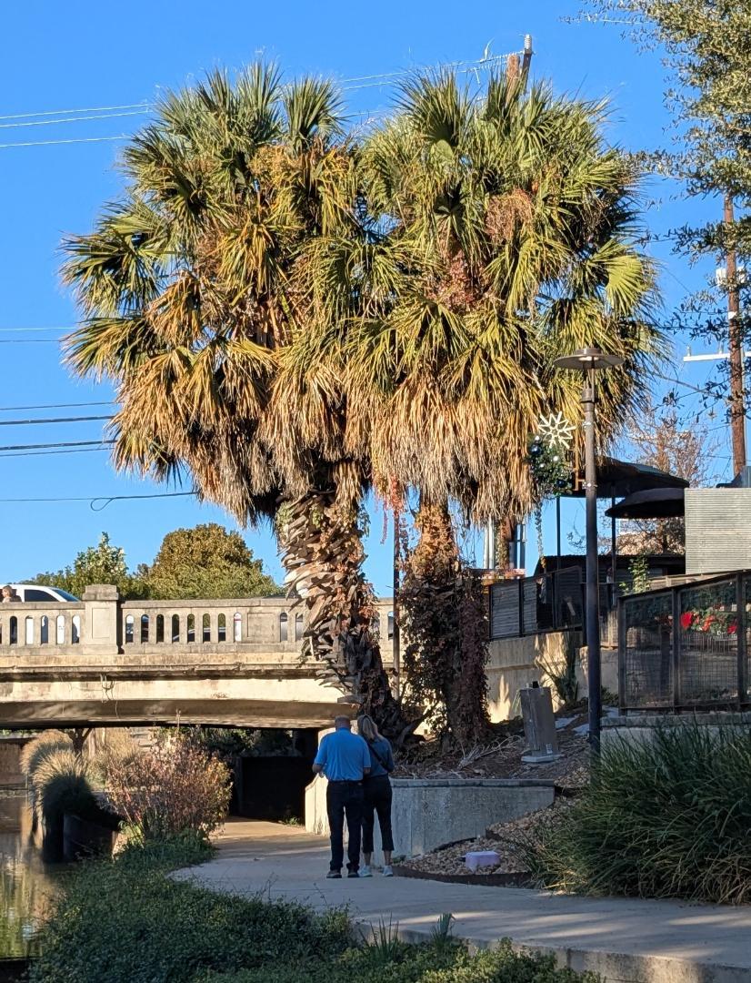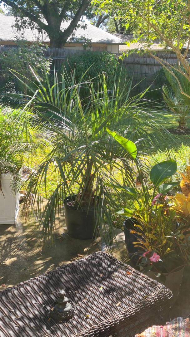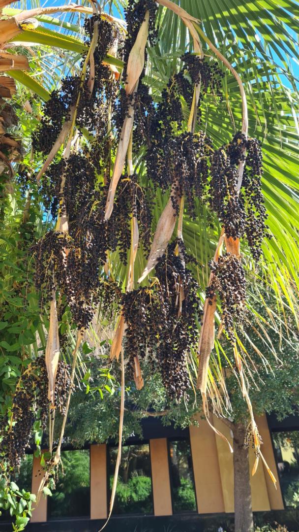 Just a handful of local pics from yesterday. Nice robusta at the San Antonio Zoo: A little coconut still hanging in there in December, also at the zoo. I liked this pair of S. mexicana on the river at The Pearl. I thought the people in the shot help demonstrate the scale. At my own house this morning, I caught a tenant living in my Washingtonia. This Washingtonia continues to grow at a rapid pace. Here it was when planted late in May of 2024: In October 2024: May 2025: And today:1 point