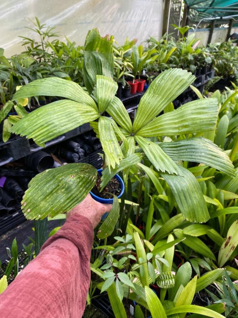 This is one of those must have species that I got going almost as soon as I bought my first farm in PR. I know I have an unfair advantage as it never gets colder than 65 degrees F or above 90 F and plenty of rain and shade. A couple of mine are seeding and after sowing in pots, sprouts are popping up. Takes 9-15 months. I plant all Licualas out when just a few leaves and just wait while nature cares for them. I never fertilize or water them. I have scattered the larger ones about, but the babies are going to be grouped together in the ground eventually. The markings stay beautiful no matter whether in full or part shade. I hope everyone on PT ends up with at least one of these!1 point