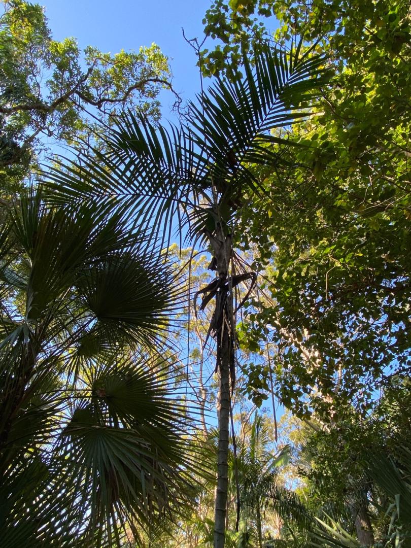 Could it be? My wee little Wodyetia getting its first sign of forming a trunk! I know …..a lot of folks here in SoCal have had easy success with them , but after losing two large specimens , one near a Roystonia Oleracae that continues to thrive , seeing my two juvenile Foxtail palms grow ( 3 winters now) is thrilling . Harry I didn’t notice this the last time I peeled the crispy leaf base from the palm! The warm summer like weather , upper 80’s Fahrenheit, we have had off and on for weeks . Yay!3 points