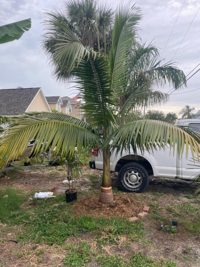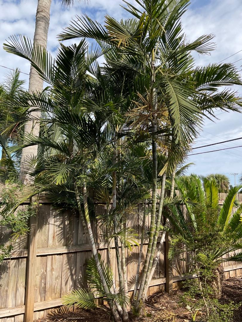 I was out cleaning up this part of the garden and did some trimming on this Decipiens hybrid which makes it easier to get photos of it. Also, for what it’s worth, I was speaking with a friend about this palm. He is familiar with the original garden this seed came from and mentioned that he believed the Decipiens crossed with a Baronii which is close by. In the past I thought it was crossed with a Madagascariensis type palm that is right next to the Decipiens, but none of these hybrids, to my knowledge, showed any irregular leaflets which crosses with Madagascariensis always seem to show. Supposedly, Decipiens and Baronii are very closely related on the Chrysalidocarpus DNA tree. That would explain many things about these hybrids. Not just their appearance, but also the fact that so many hybrids happened from the 1 seed batch, and now the hybrids themselves are making plenty of viable seed. I’m no expert but I wonder if palms that are so closely related hybridize, does that create a somewhat new species? Or a variation?7 points