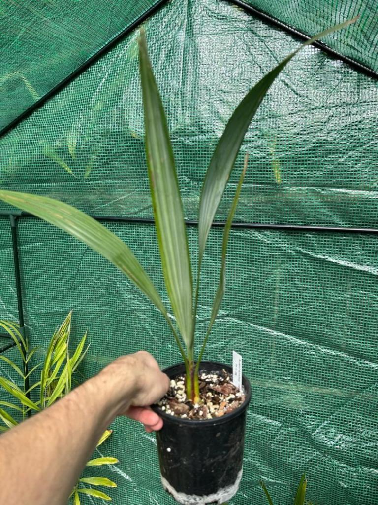 Looks like quite a few of my palms will be getting the ring this growing season. Here’s a couple: Chrysalidocarpus prestonianus hybrid (consensus is likely x pembanus or cabadae). I believe this is originally from Floribunda seed. It definitely has hybrid vigour just in the fact it is growing here in Melbourne. Next up Chrysalidocarpus baronii Black Petiole/Vokona Lodge. Got a batch of 10 seeds from RPS back in 2018 and all germinated 2019. This is the largest of the bunch but also the least colourful. I’ve got 5 left now and the others are all quite striking in the range from red to black leaf bases and petioles. Always thought they’ve been quite slow, but considering it’s been 6-7 years from seed to producing clean trunk, I’d say that’s not bad.7 points