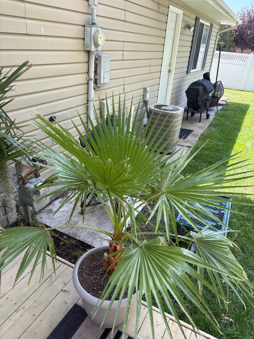 I’m happy to report that the Tahina I planted in memory of our dog Gracie, and also the first palm planted after finishing construction and moving into the house, is doing well. After planting it, it experienced another spear die off, but this time in the ground. I wasn’t going to dig it up and mess with it and just hoped that it would send up a new push. It did and now it’s finally showing good growth with each leaf being larger than the previous.9 points