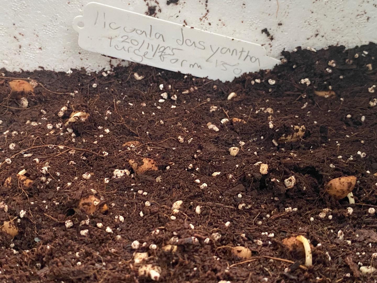 Searching Google Maps for somewhere nice to have lunch, I came across a restaurant opposite Giardino Garibaldi (always on the lookout for potential palm locations 😉). As we tucked in, I noticed this specimen in the distance. Upon closer inspection, I believed it to be Butia odorata x Jubaea chilensis. It's producing viable seed, which is most likely self pollinated as there aren't any other cocoid palms close by as far as I could tell (some Syagrus romanzoffiana 5-10 minutes walk towards the coastline). Most of the seed floated in water, but I'm persevering with them as I've germinated floating Jubaea and Butia before. Further research online uncovered an old article on the European Palm Society that confirms the ID. http://www.palmsociety.org/members/english/chamaerops/041/041-14.shtml by Juergen Plaumann (Chamaerops No. 41). There is also a picture of it on there. BxJ seed with endocarps intact. BxJ cracked and endocarps removed9 points