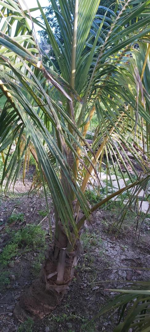Seeing as we're at the end of 2025, I am posting the current condition of my coco-test here in the Palm Springs area. I see I never posted one at the end of last year, mea culpa. So I'll bring it up to date. Of my newer specimens, only one was a new type...the large "football cocos" from Kanoa Hawai'i received in April 2024 that I noted above. It grew from a nut with eophyll to a six-foot plant in one season, absolutely beautiful and amazing, but during last winter the central spear started to dry out..followed out by the whole plant. So...strike-out on that one... In spring of 2024 I added another Jamaican Tall (sold as a Panama from the same source as the others, Let's Grow Florida), planted in a protected jungle glade under canopy, facing southeast but under quite dark but slightly dappled shade most of the time. I've labeled this one as aff. Jamaican No. 3. This I planted next to the spot I had placed the now-dead "giant football" Cocos, but this one has thrived and has excellent appearance. The older aff. Jamaicans No. 1 and 2 have done well. Very similar to the other two I have in an adjacent area under slightly more sunlight. All of these have good appearance now, a couple did throw a stunted leaf after their first winter but I think this has lessened now. All of these coconuts put on about 3-1/2 leaves this past season. The supposed red spicata I purchased from Eureka Farms in Miami has much better appearance this year, and also put on 3-1/2 leaves or so this year. This one really does not want the strong horizontal sun during heat waves in fall. The two leaves facing that direction did yellow from this exposure, however, the other large leaf, which faces north, looks perfectly healthy. I added another red spicata this last summer and it is not yet planted, though I have it in more sun, southeast exposure, in the general area I plan to plant it this coming spring. It looks a little ragged after being grasshopper food for a while, exposure to sun from its probable greenhouse origins, etc. So I will photograph that one in 2026 once I have it in place. All in all, I can say that these two varieties have persisted and seem to be improving in appearance and show no real upset with winter cold or lots of shade. In fact, they really look much better in a good amount of shade. Perhaps (and this I will test with the newer spicata) conditioning in more sun during summer will prevent the sun-scorch that the spicata has shown in fall. Current photos taken within the last month: Presumed Jamaican talls: aff. Jamaican No. 1: aff. Jamaican No. 2: aff. Jamaican No. 3 (planted spring 2024): Red Spicata No. 1:7 points