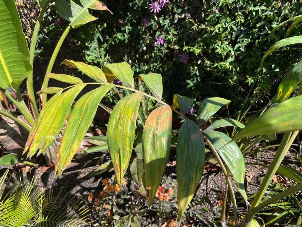 A quick and mostly positive update. Hope those who have had their spirits dashed will find some ideas from the short post below for potential paths forward that doesn't involve only planting a dozen species of plants. The pineapples didn't seem to notice we had a freeze since they were near a concrete block wall. They're getting ready to produce fruit this year. : If you're looking for safer options, but don't want to crimp your planting selections too much, branching and clustering palms like Hyphaene coriacea, Ptychosperma macarthurii, and Allagoptera arenaria are good options that give you more than one shot at coming back. There should be Hyphaene seeds available at the 2026 CFPACS Spring Meeting this weekend: Chrysalidocarpus lutescens comes back even when young. This one is coming back and is not long from seed. Coconuts are on the comeback trail, but aren't out of the woods yet as @pj_orlando_z9b mentioned. Even in the better microclimates in our respective cities, they took a major hit. The stores are running out of Copper fungicide here, so probably good to go get a few bottles of it before gas catches up to it in price. You can see some white fungal growth on the dead tissue. Now that the (hopefully) last cool-off is in the rearview mirror, it's probably best for me to just to remove anything damaged so it doesn't provide a breeding ground for fungus and attract white flies and other bugs. There is another frond behind the one partially visible in the photo that has green on it as well. The Maypan is in similar condition.5 points