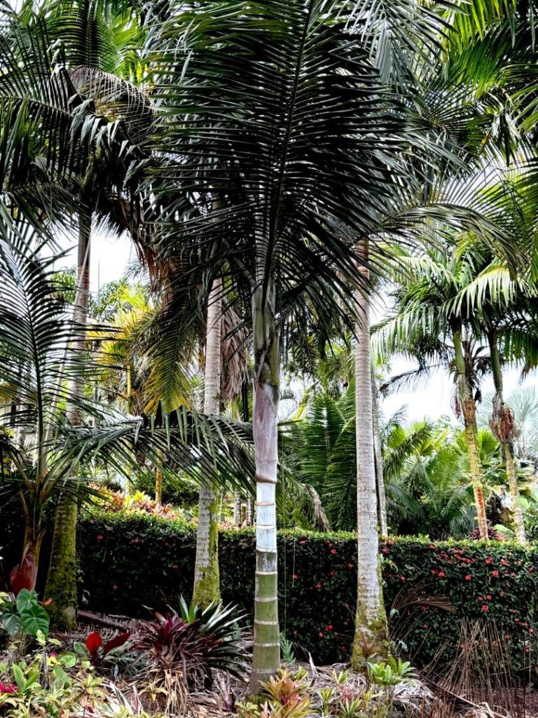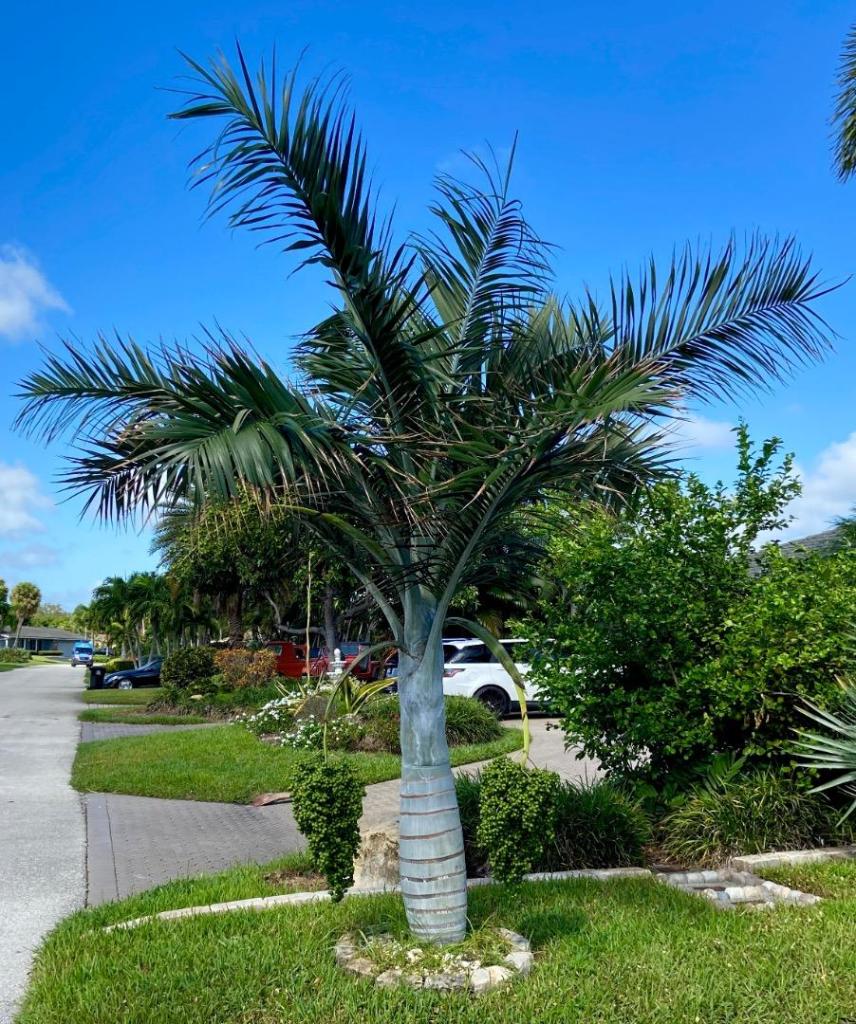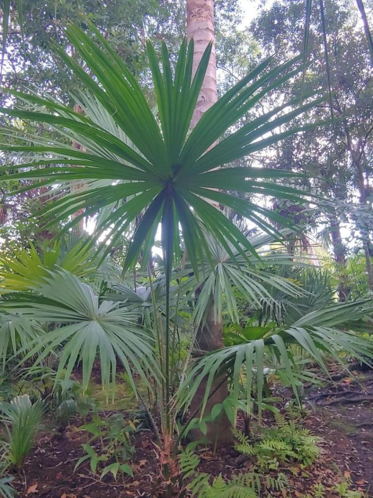 I have two small Leucothrinax. In a couple years in the ground, they are very, very slow. Just growing some bigger fronds, without much height gain. They are much slower than Pseudophoenix Sargentii for me. Leucothrinax will stay very shrub-like for many years, while Pseudophoenix gains height and leaves them behind. The biggest one in my neighborhood has maybe 5 feet of trunk and is probably very old, and is much shorter than the Pseudophoenix with the seeds above.1 point