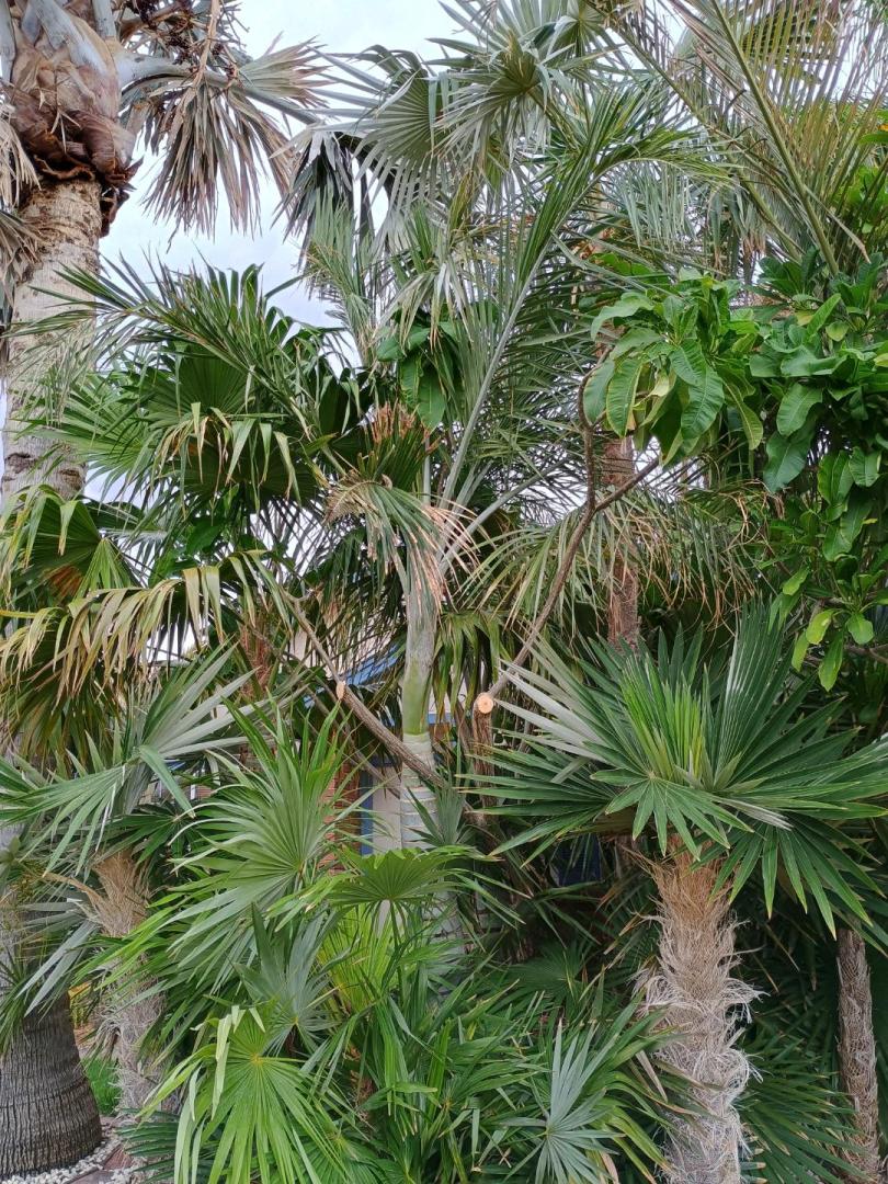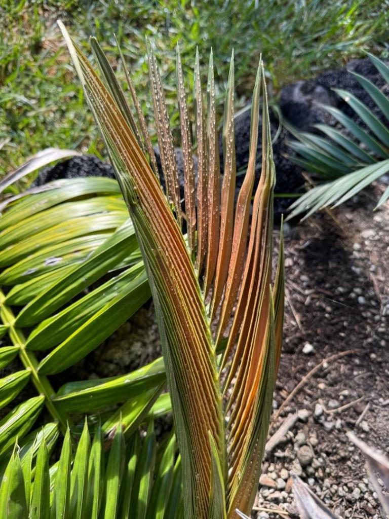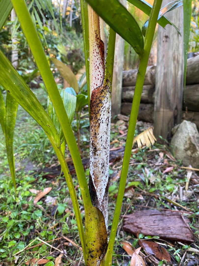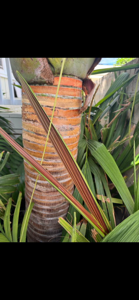 Shedding Light on the Pseudophoenix Decline. 2013: https://palms.org/wp-content/uploads/2016/05/vol57n1p24_29.pdf When I was down in The Keys, I’d say 2 out of 3 that I saw exhibited at least Rank 1 symptoms…. Islamorada: I don’t think it’s necessarily inevitable, but it is prevalent in Florida. No one is 100% sure of what causes it. Perhaps viral, inciting a subsequent slow fungal rot of mature lower crown tissue that worsens over years. The deepening black rot is the final common pathway to death. It seems to need moist conditions of occur, and it’s plenty wet/hot here a lot of the year. I don’t think @aztropic will ever see it due to his dry conditions. I have 6 growing here at the house. It’s just guesswork, but I’ve done the following to see if it will help: 1) Planting in full sun out in the open, to facilitate drying and airflow, while keeping rotting debris out of the crown and leaf bases, and keeping the plant growing as fast as possible. 2) Idealizing soil conditions with fast draining amendments, and the addition of limestone to keep the pH high/basic. I’m pretty generous with the fertilizer also. 3) Since fungal rot seems to play a role, I paint any wounds, and the lower crown right after a newly dropped frond, with daconil/hydrogen peroxide. I also pour this into the leaf bases. Since I get about 3+ new fronds per year, I do this about 3x per year. So far seems to work, with no ill effects. Someday mine will be too tall to do this. Fungal rot kills a lot of palms here that do well in California and other drier areas. Especially if they are slow growing, like the big dypsis. Dripping wet 85 degree nights for months on end seem to start the process, and they just can’t outgrow a little rot that starts up. Other palms can blast right through it, dropping old frond bases before it can take hold. Some slow growers seem more resistant to fungal issues, like the New Caledonia types. I figure keeping the fronds cycling can’t hurt. I’m also trying to preemptively treat the fungal component by keeping junk out of the crown, keeping the crown dry, and ventilated and not letting fungus take hold at the “V” split of the oldest frond, where the decline rot starts. Will it work? I don’t know. Mine are just juveniles. But so far so good. Contrast these with those from The Keys above….2 points