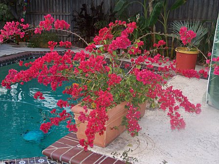 In the hotel Las Hadas on the Mexican Pacific actually sprinkle bouganvillea flowers on the pool to add to the tropical ambiance.