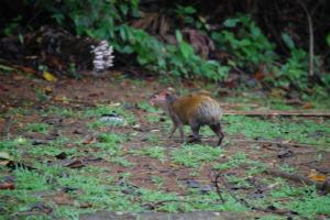 This agouti was eating fallen palm nuts outside my bungalow in Corcovado at dawn:
