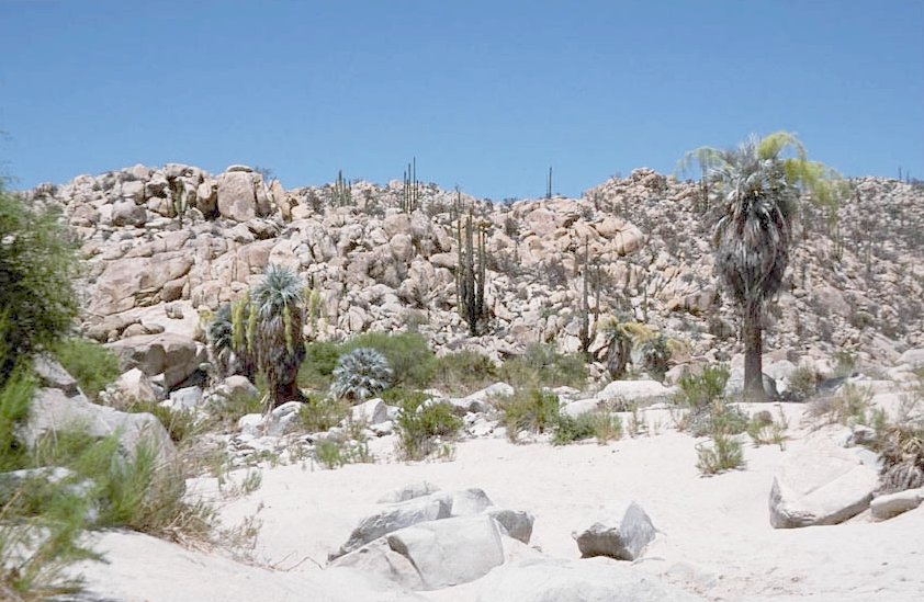 Esas son palmeras desérticas, aguantan bien las sequias y por lo mismo aguantan temperaturas frias. Por lo general se encuentran en los barrancos de las colinas de las sierras principales, menos brahea edulis, palma nativa de la isla de guadalupe en el oceano pacifico, a una distancia de 300 kilometros al oeste de la península.