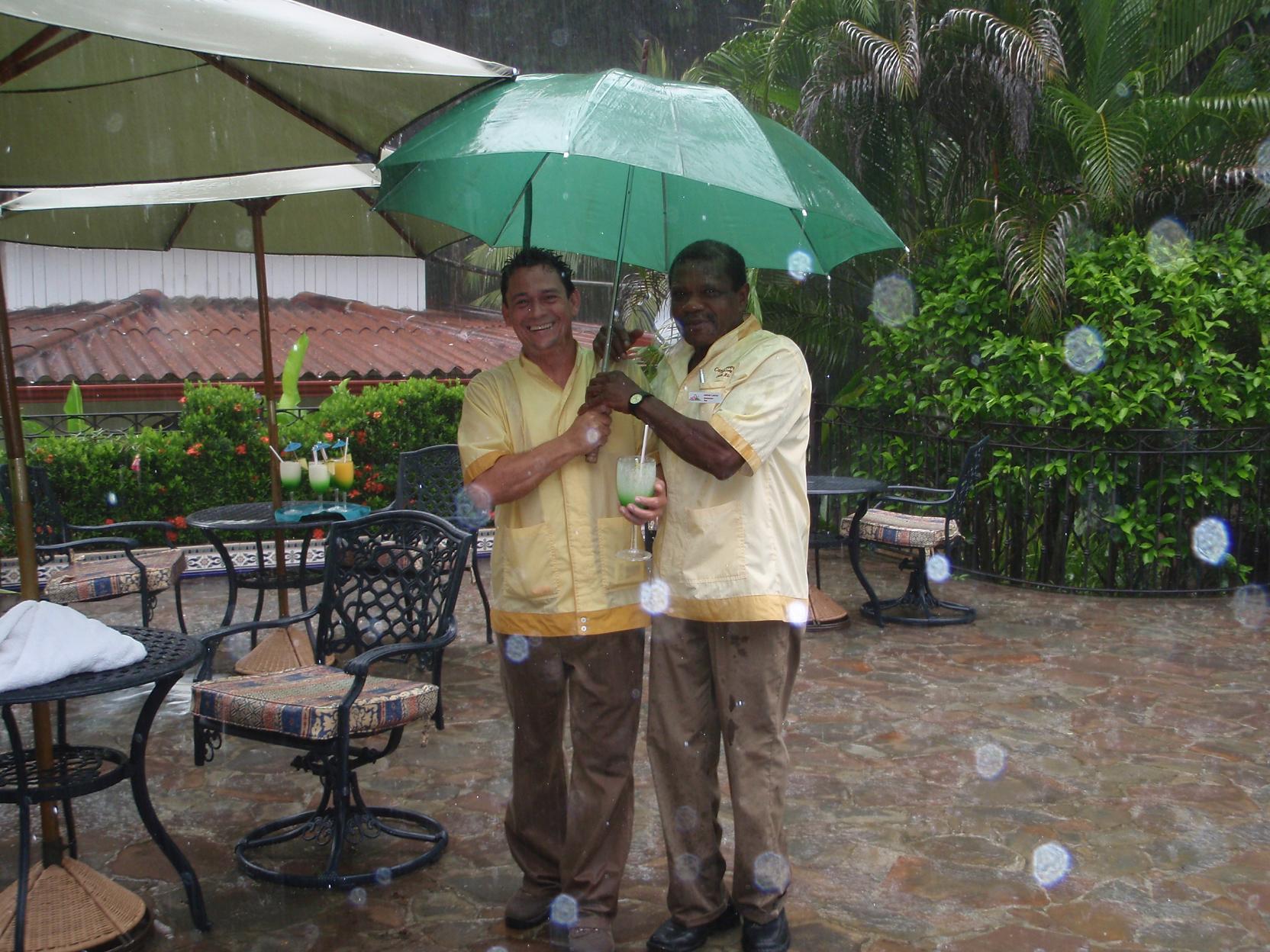 Now, before the rains had come, Andrea and I along with our french friends all had ordered some drinks. When it was time for the waiter to bring them, it was pouring down rain ,but they insisted on bringing them over to us. Great guys, and went out of their way to please us.