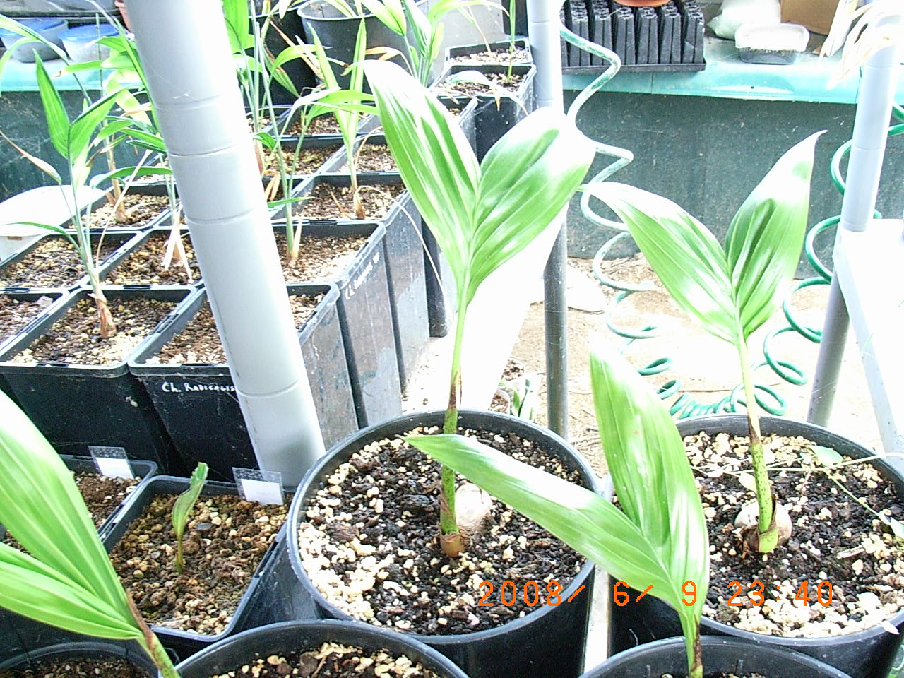 Esta palmera tiene futuro como ornamental. Ahora que se ha introducido en cultivo, en casi todo el mundo, parece que es más resistente (a todo) de lo que se especulaba hace pocos años. Tengo algunos de 1 m, en maceta. Parecen "inmortales", resistentes a sequía, viento, frío (mi mínima es 10 C), sol directo y maltrato en general. En el Palmetum se han plantado 4 de 1,5m, hace pocos meses. Hace tiempo que no voy debo de ir a verlos esta semana. Sacaré alguna foto.