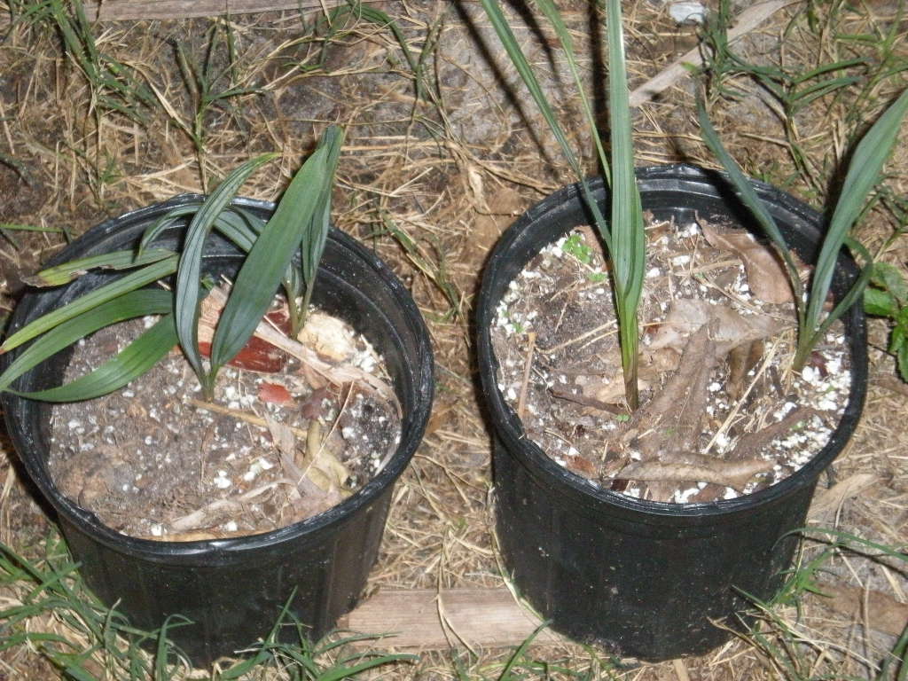 here is pic of my totai sdlgs. They are still sending up simple leaves. This the 1st time any have sprouted (waited 4 yrs), none have bifid leaves as yet. But many of them formed a 2nd and in one case a 3rd palm off the seed after I dug them up. You can observe this in the pic.