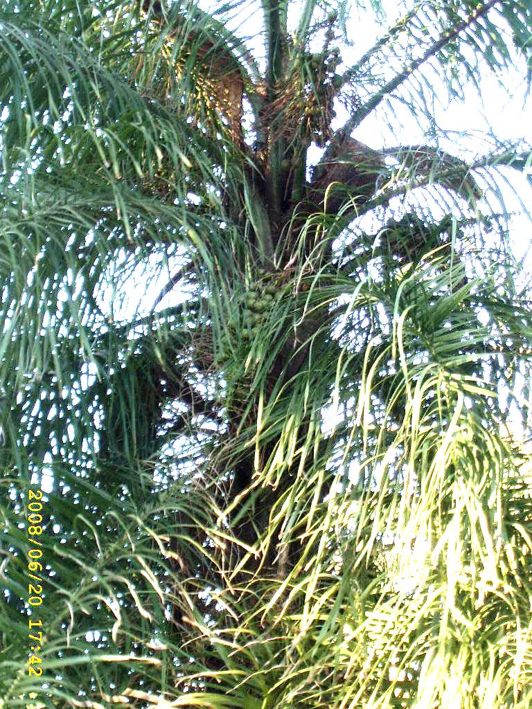 Aqui son unas fotos viejas que no tengo en mi computador ahora. Pero todavia estan en el Imageshack. Estas palmeras estan em Maues en ele oriente de Amazonas cerca del Para. Es una area con muchas Acrocomias. Me parce que tiene algun dano de insecto en la primera foto. Hace mucho tiempo que no hey visto esta foto. Pero, puede ser de fuego tambien. Esta area esta quemada regularmente. y, aprentamente las Acrocomias se dan bien.