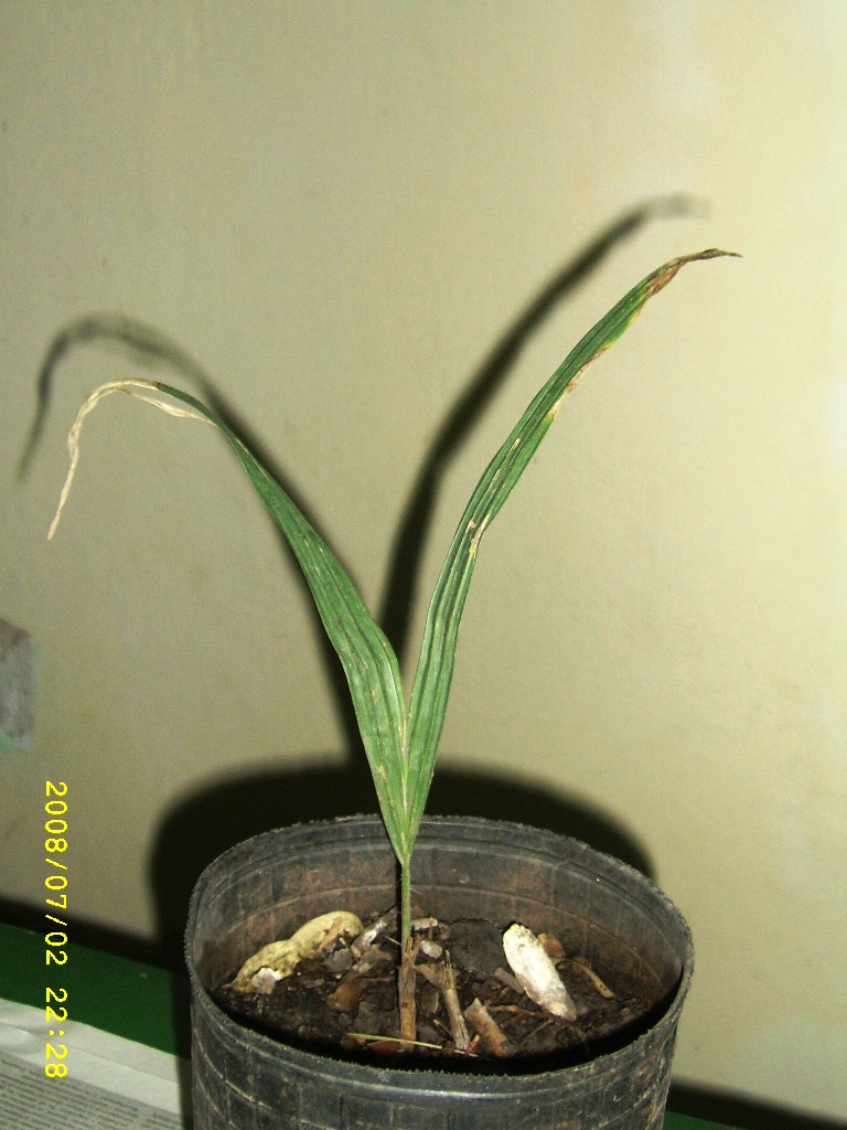 Las imagenes que coloco debajo son de semillas de la misma palma . Ud puede ver que uno de los plantines tiene hoja bifida y el otro no. Puede Ud explicar esto ?