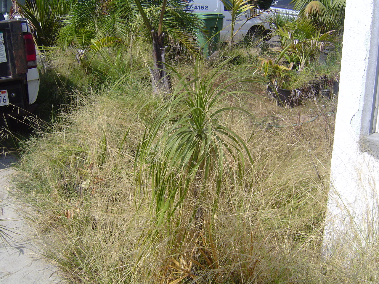 Bill, come on. What do you think you'll find?????? I think you'll find more species of "weeds" in your yard than all the known species of palms in the world. Don't make me fly out there with a case of Round-up and my back pack sprayer. Because I will. Start planting some more palms......pleeeeeeeeez! :)