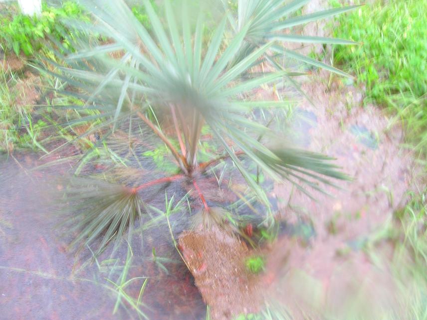 A silver...er...red lining! This new frond popped up today! 1 out of my 9 red feather's in the ground. I think the majority of my palms are going to be okay, if not liking this Century (hopefully) flood.