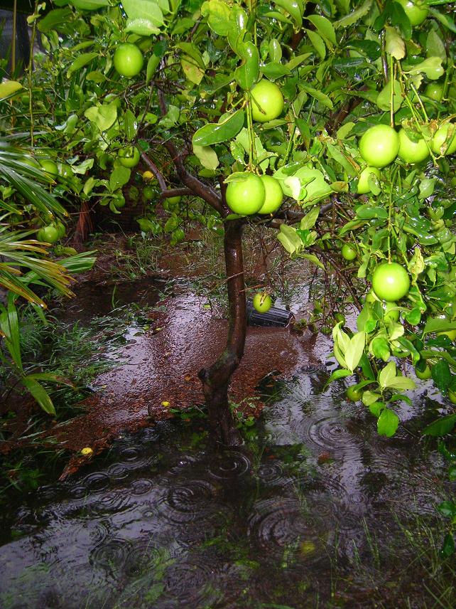 Man...those are incrdible pictures. Hopefully no water in the house itself. It looks close in the first shot. Assuming the water recedes quickly and the sun comes out to dry it up, I don't imagine that you will have much problem except the mango and, of course, the citrus. Good luck.