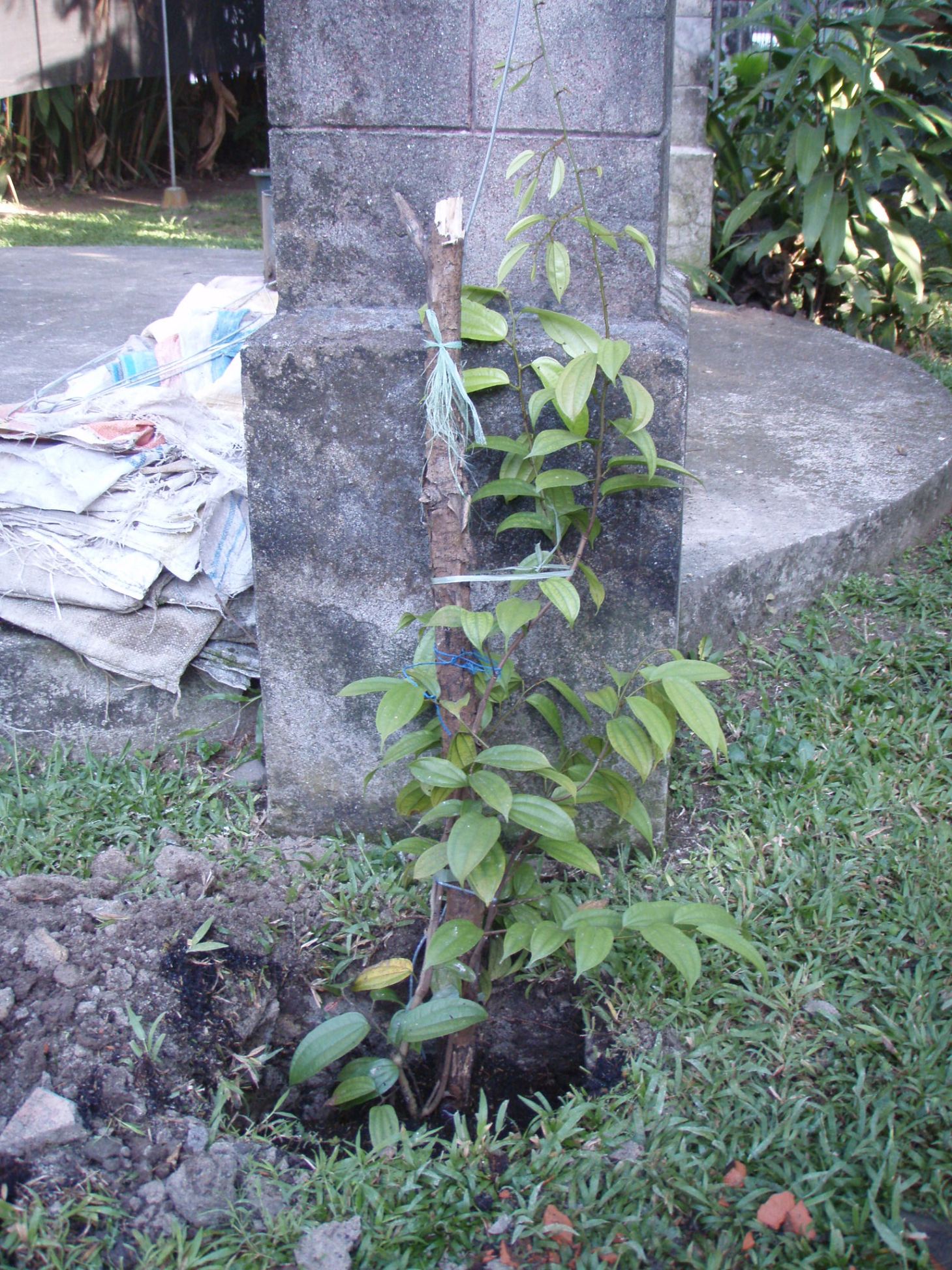 Planted out the Bohenia Kockiana as soon as it got home. This will make a good canopy for teh trellis. A new guinea creeper I planted there has not flowered in 8 years so this should be a good replacement.