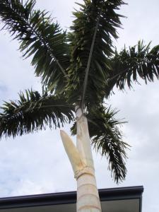 My largest foxy lady just dropped a leaf and exposed herself to the public. This palm was planted in August 2003 from a 15 gallon and has grown absolutly crazy for me. It now has about 13 feet of clean trunk and overall height of 25 feet. The base or foot is 58 inches in circumference. This palm is one of the fastest growing palms I have ever planted. I hope it produces viable seed, anyone out there know if this can happen? Here are some shots from today: