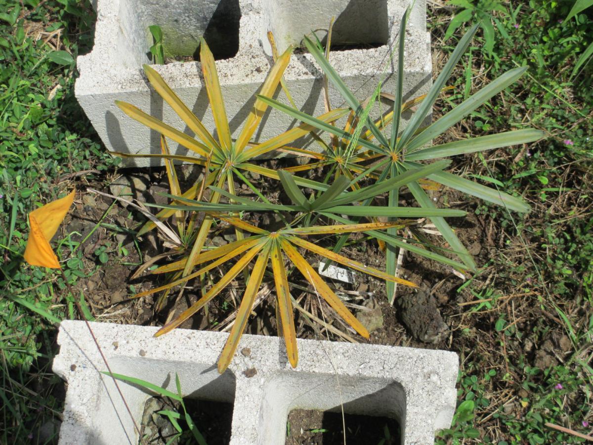 Al I am eager to see its size in 5 yrs. I have not had much problem growing any coccothrinax here when I fertilize with minors. The color thing maybe is related to the serpentine soils but I would guess its the iron that makes it darker green. I kind of doubt nickles will break down anytime soon :)