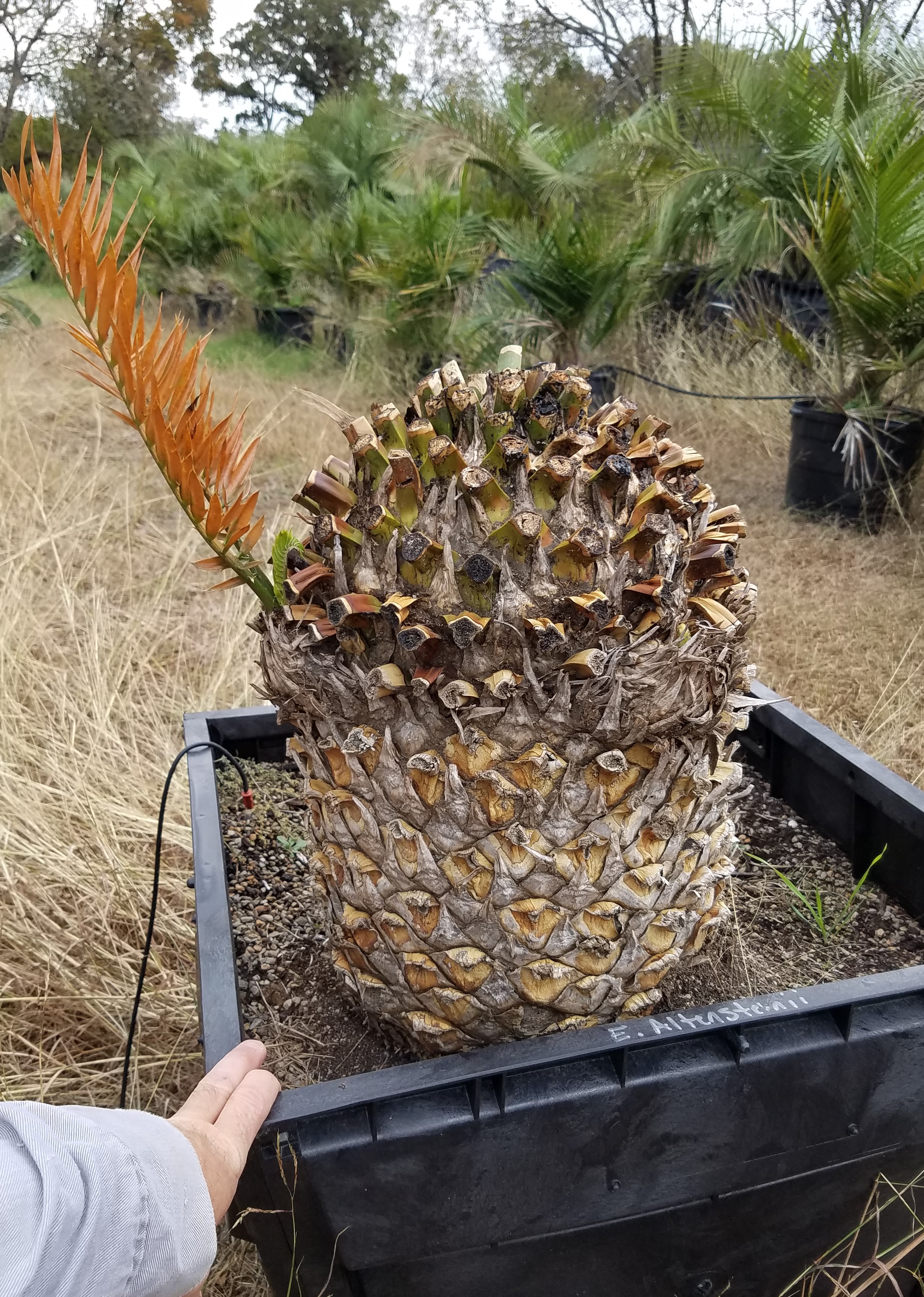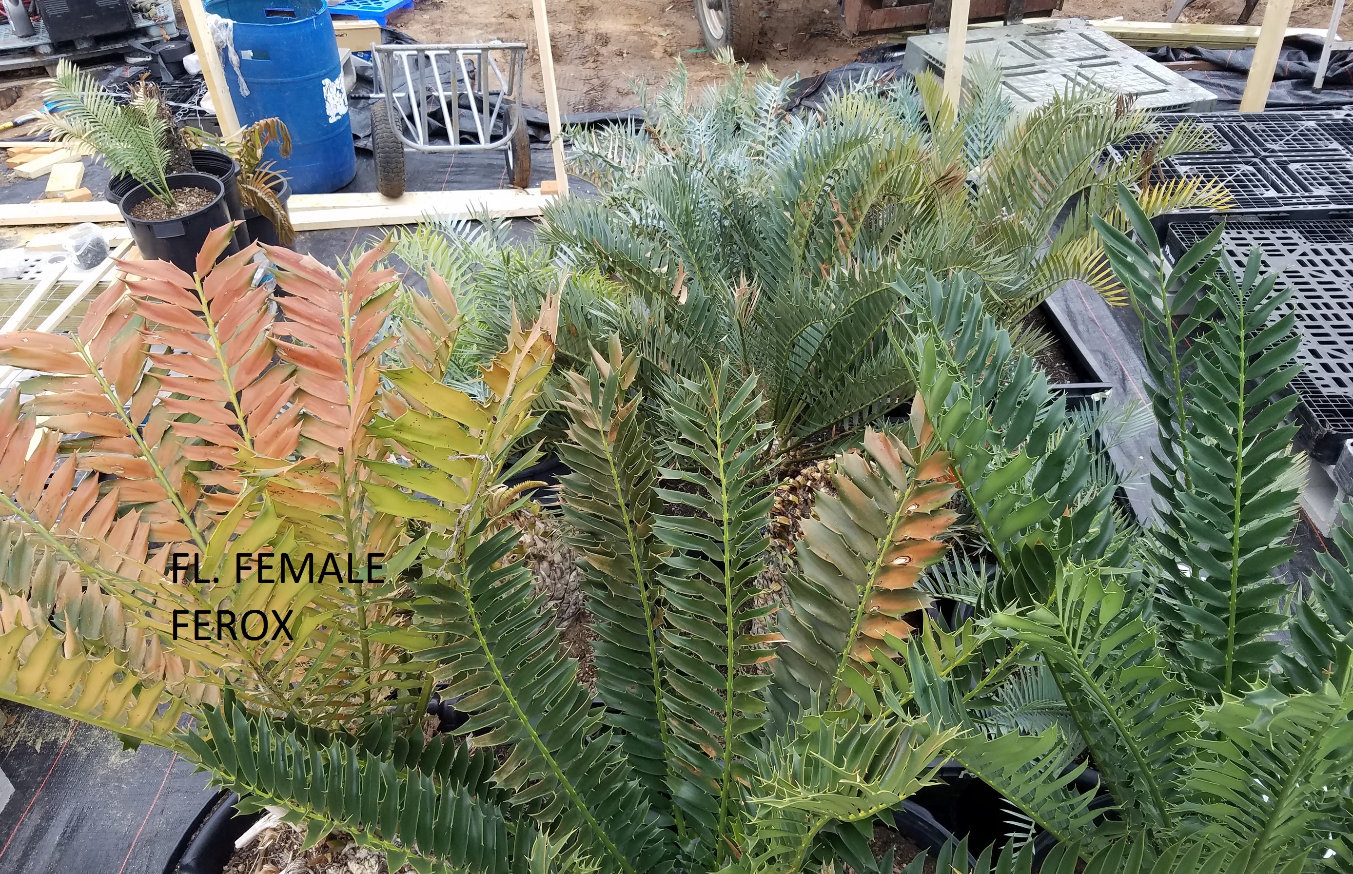 I rounded all of the non-revoluta cycads up to put in the newer greenhouse this morning and I know this is a coning/flush thread but I wanted to post these few pictures of frost damage.