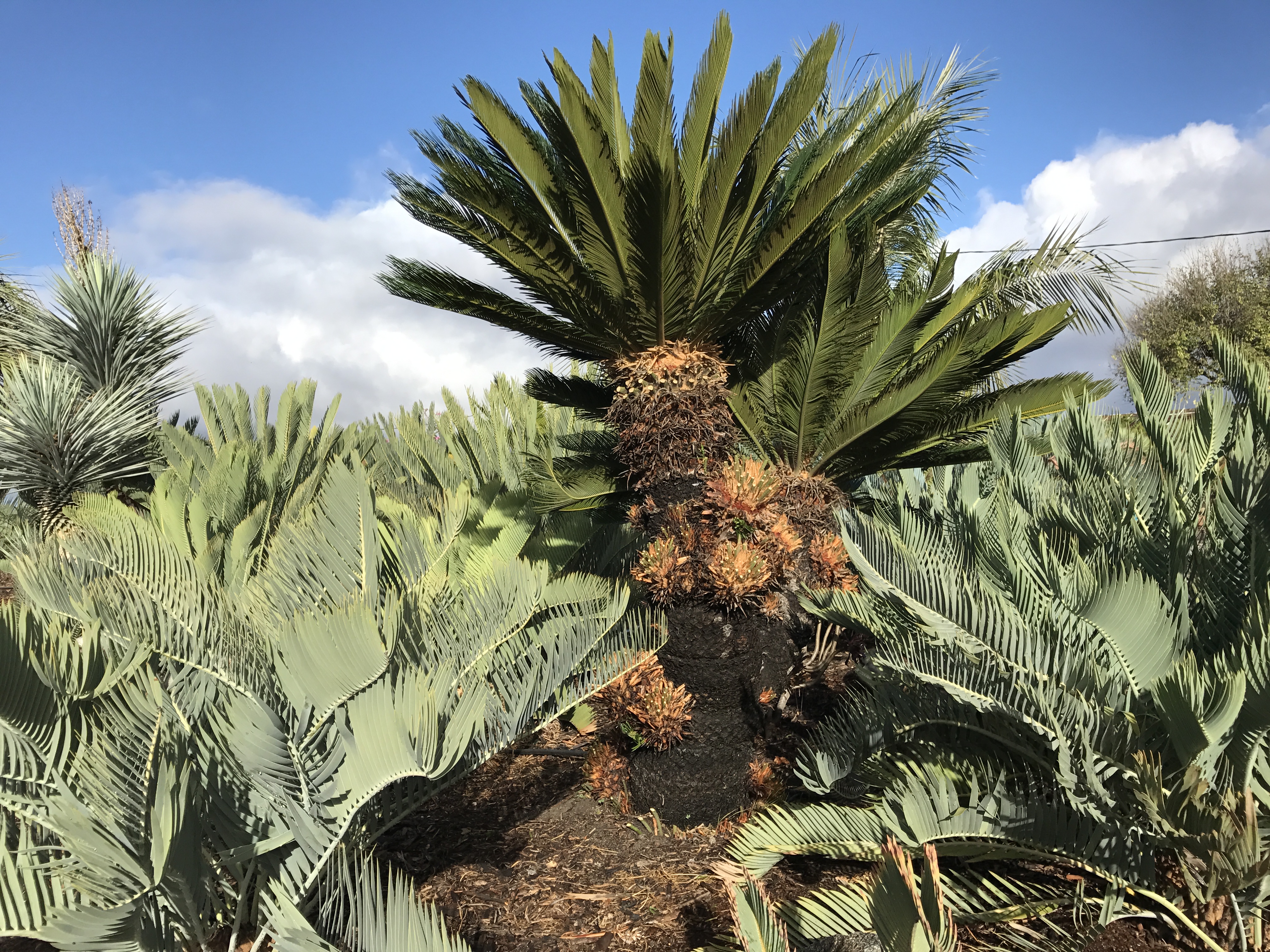 I like all the E princeps in the foreground... they are more exciting to me than the multi headed C revoluta.  Which Encephalartos are those in the background, with the very erect leaves, adjacent to the yucca?