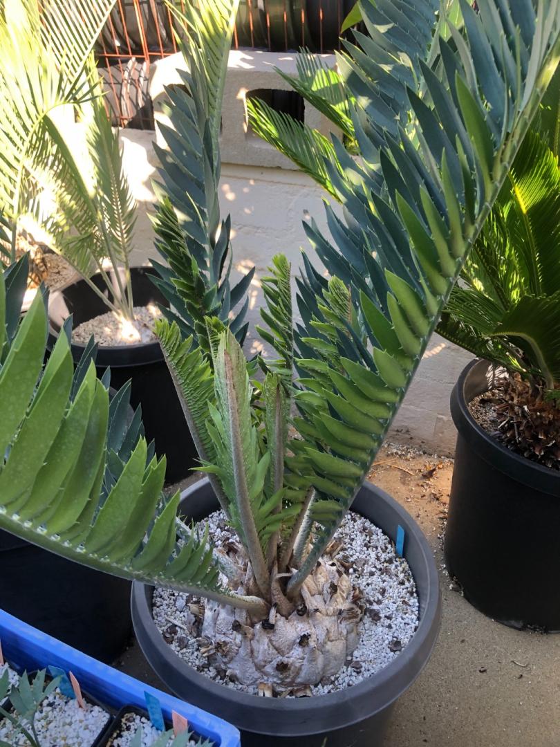 I have a flurry of flushes going right now! Heres just a few. This Encephalartos “Bunia sp.” flush looks like animal fur.
