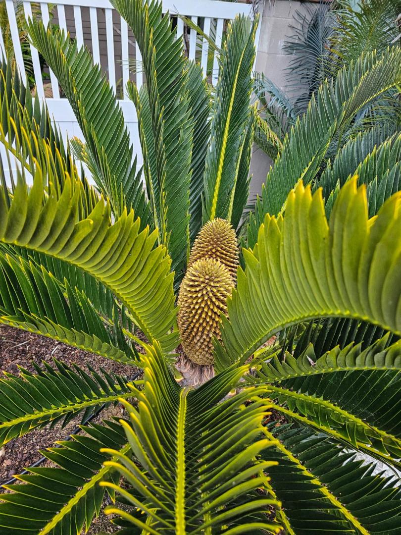 My neighbors Encephalartos Ferox dusted with male pollen. Looking forward to the seeds!