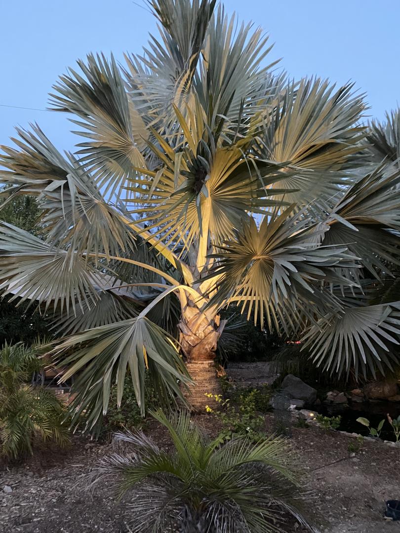 This Jubaea x Butia F1 is probably my favorite in terms of form.  Shortly before sunset, light was cast on the thick truck.  Long leaves have a lot of Jubaea character.  In terms of color, I have a silver JxB F1 that comes to mind.