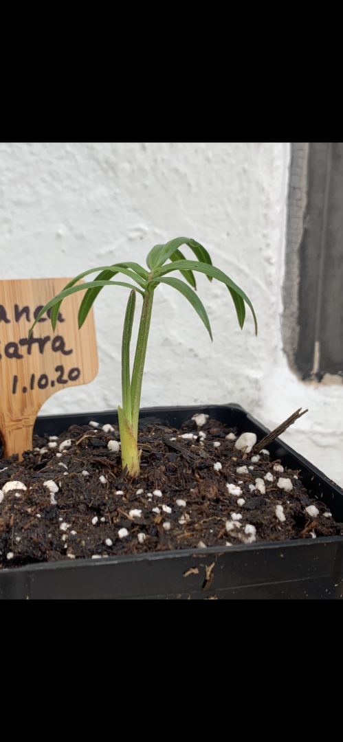Ravanea Lakatra, slowest grower I have had for now, she is 1 yr old and very rare but already stunning since a tiny seedling and will hopefully become a beauty of its own!!