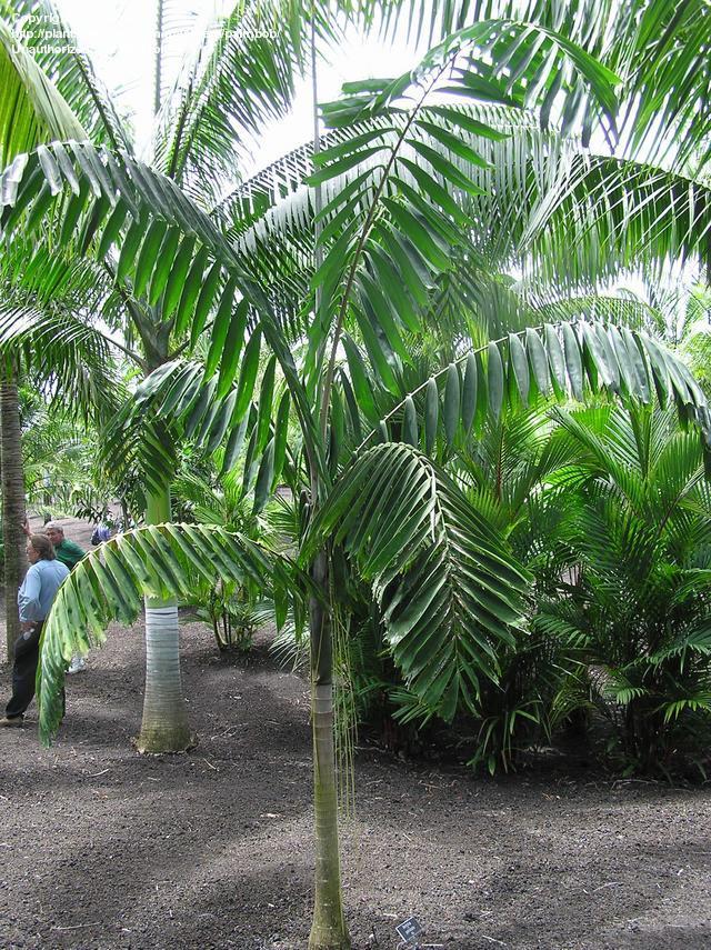 One thing I have noticed, though I am by far an expert on this genus (since I have never been able to grow it)... V joannis has thicker, droopier leaflets that touch each other, and has a pale green crownshaft... most of the other Veitchias have less pendant leaflets, or they have a bit of space between them, or they have a paler crownshaft. These are V joannis photos