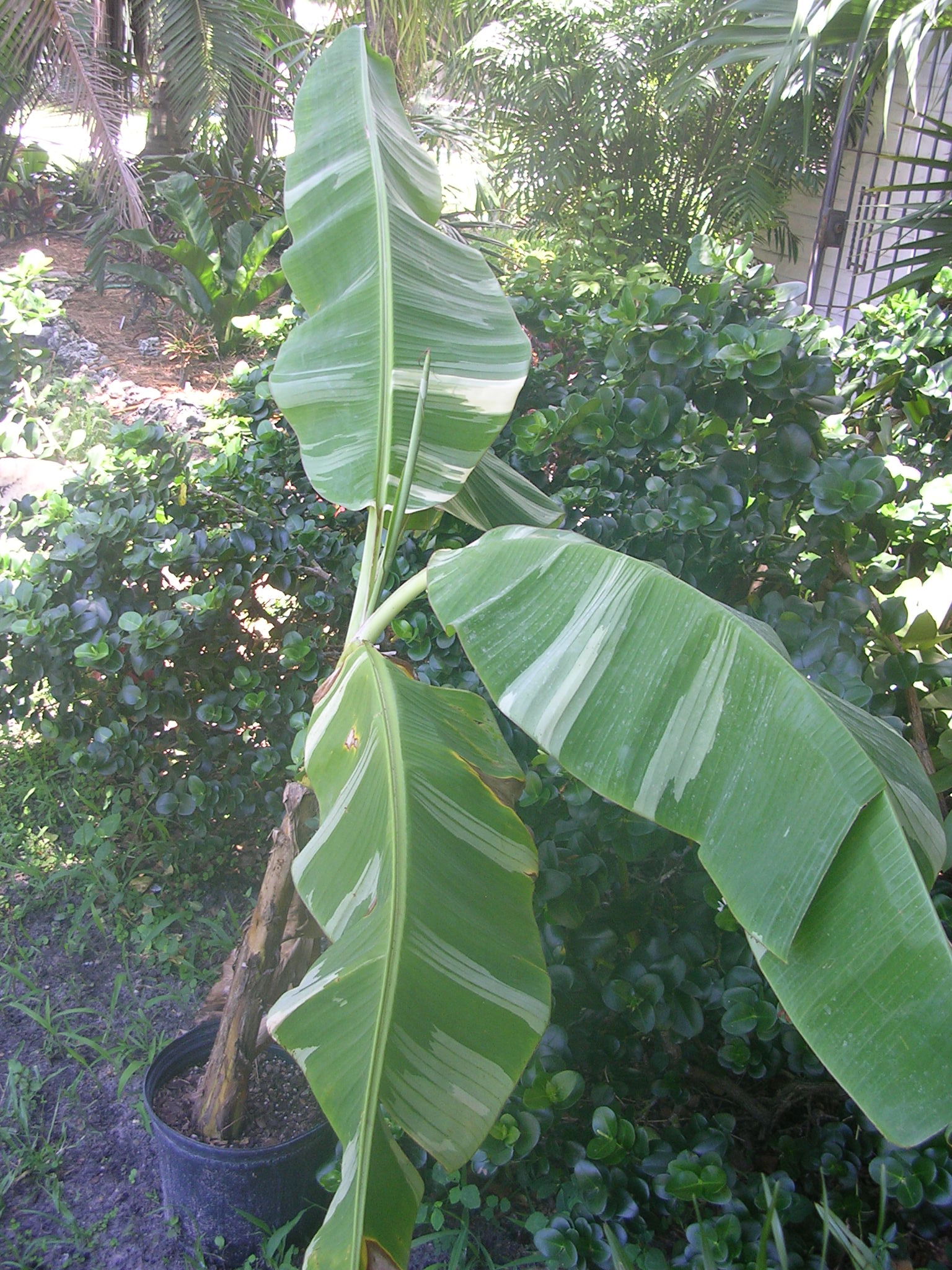This thread made me go out and acquire one last weekend :greenthumb: from Action Theorey Nursery in Goulds, FL, 305-970-5018. It is also called Musa paradisiaca. They only have robust seven gallons left. Here is a photo of mine.