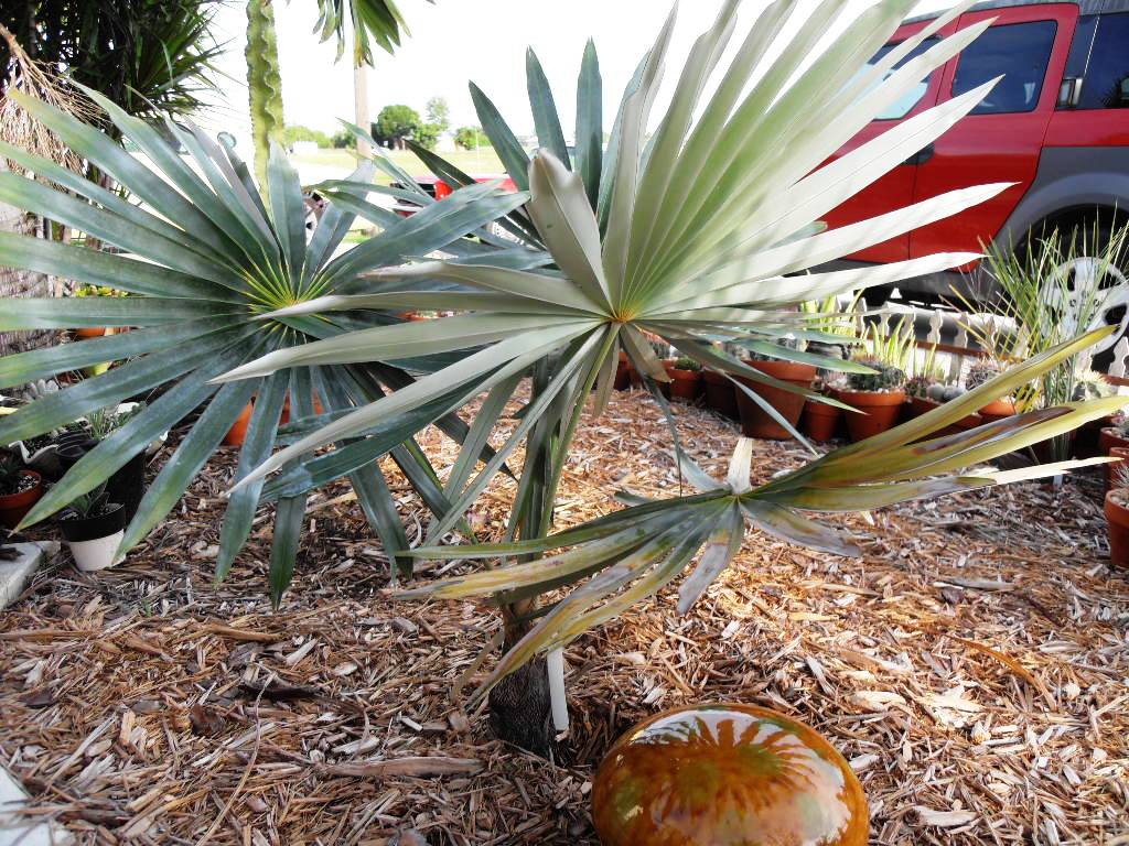 I think it was about half this size. It has a definite silvery-blue hue and heavy textured leaves that make it stand out from all my other Coccothrinax. I treat it like the rest - no harsh treatment. Despite its thick leaves it seems more cold sensitive. I wouldn't know how to replicate serpentine soil and don't want to risk contaminating other plants in the garden. I also have a 3-strap leaf Copernicia cowellii that is native to serpentine soils; don't know whether it will make it or not. That thing makes P. ekmanii look like a rocket.