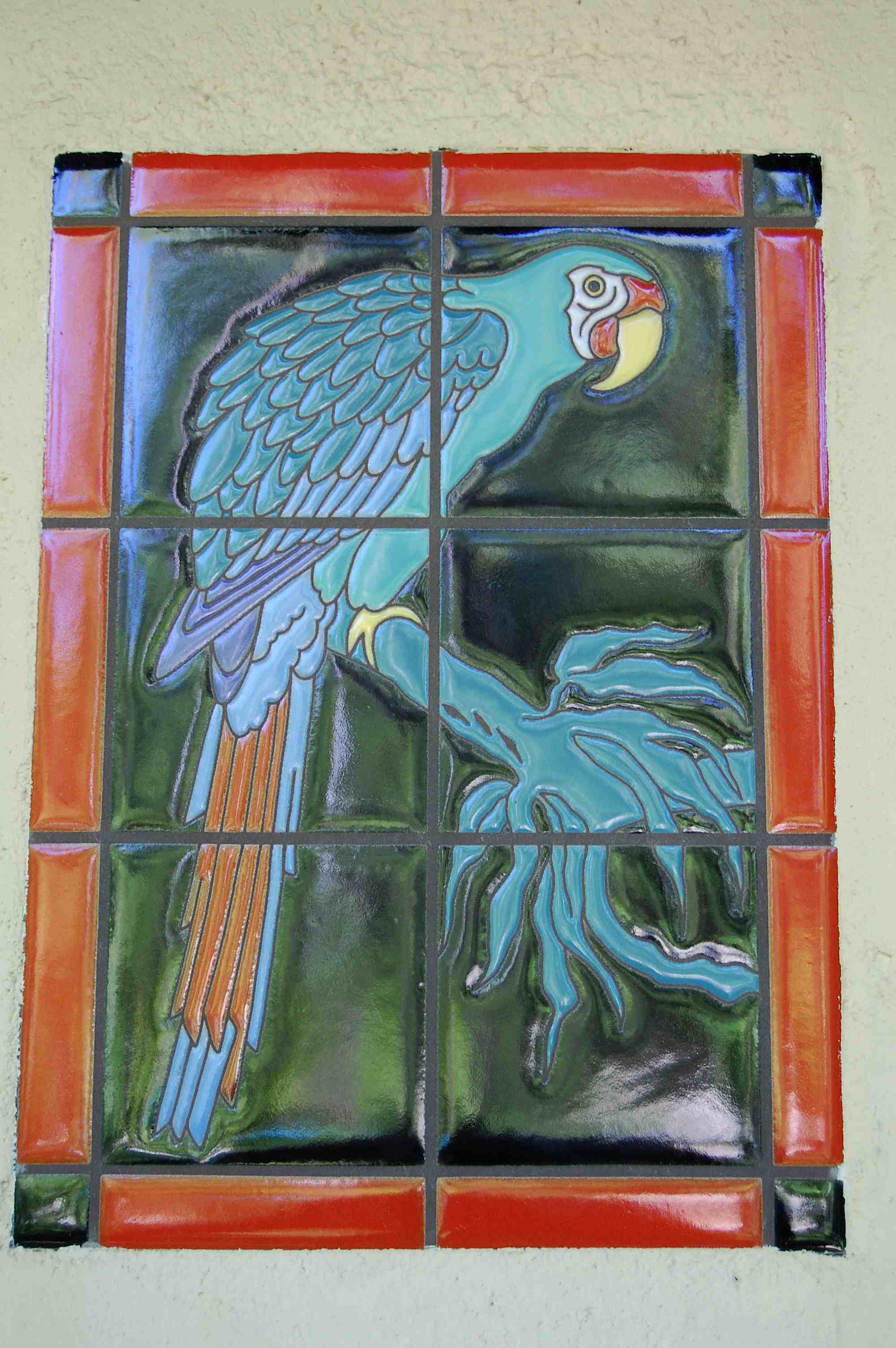 The pool house is along this path, and this parrot tile caught my eye...