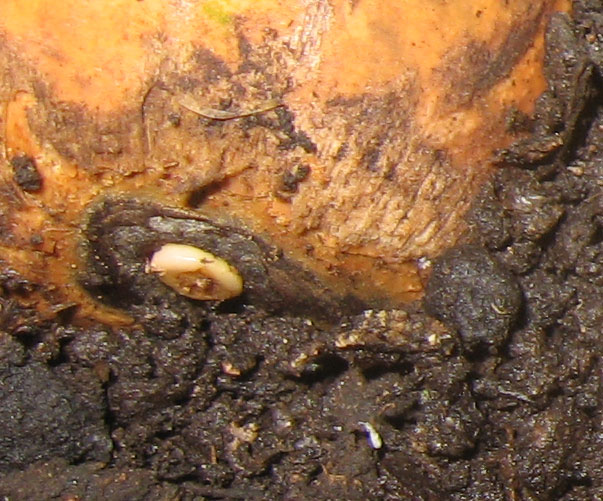 Seed3 - the embryo has bulged out approx 1-2 mm from the seed and may be growing... It decided to get cold here this weekend so certainly that has some effect on growth speed for this tropical delight... More info later