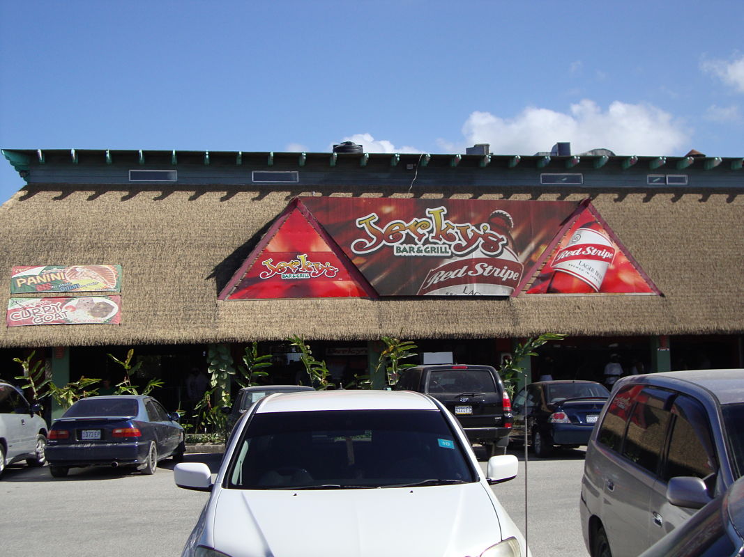After I met my friends at the airport and we secured a van for the ride to Negril, we stopped to have lunch at this Jerk restaurant. Jerk is a Jamaican recipe for making pork or chicken on the bbq. Near the restaurant there was a triple Bismarckia.