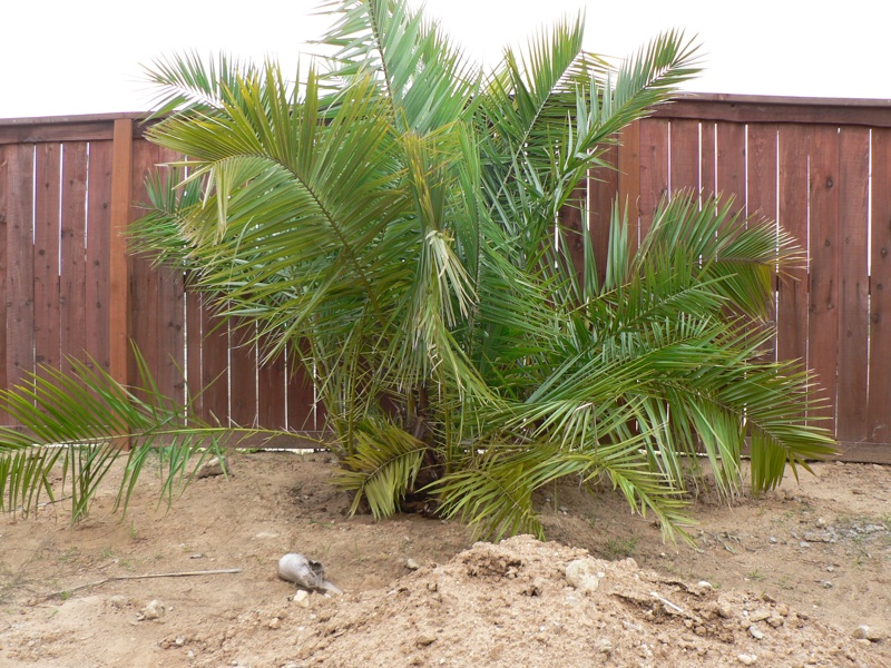 Here's a couple I've already planted, (couldn't wait until spring, not a shred of patience with me!) Large 20 gallon reclinata, (doing much better than my previous.., and large 12' tall washy. I'm waiting until a good solid week or weeks of warm weather before the Bizzy and Juby in pots go in, and finally, a 20 gallon Canary that's already pretty darn big. Can't wait til summer when these pups take off!